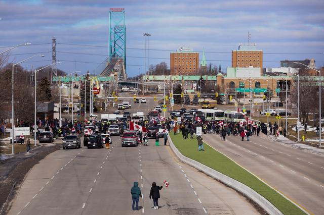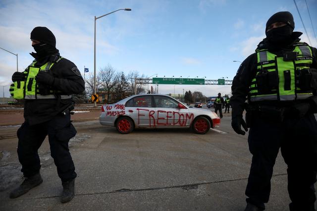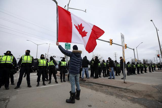 Canada Police in Standoff with Protesters Blocking Bridge to US