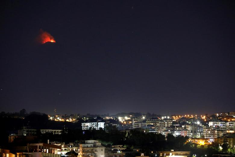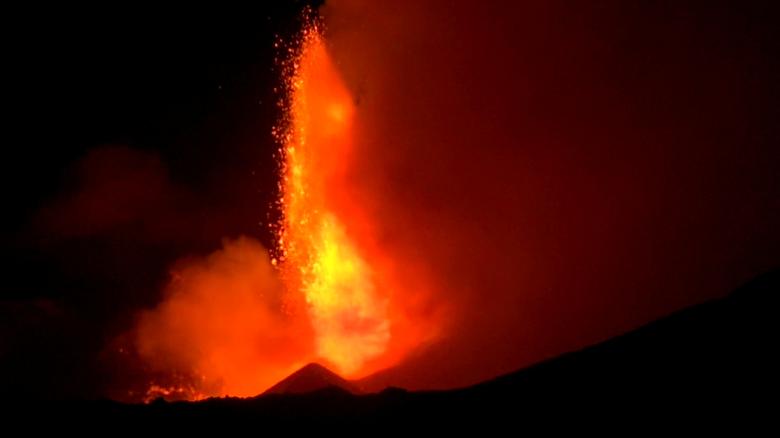 Italy Mount Etna Shoots Iava into Night Sky