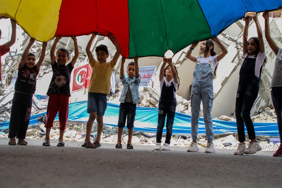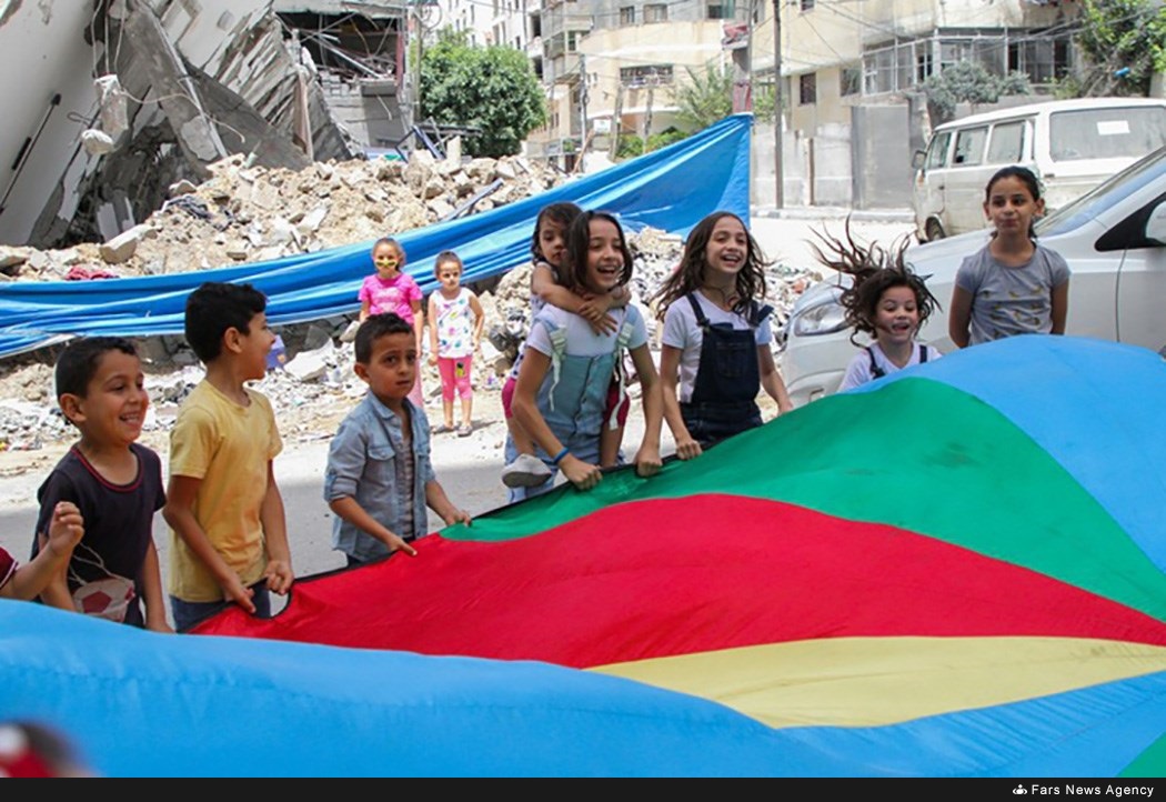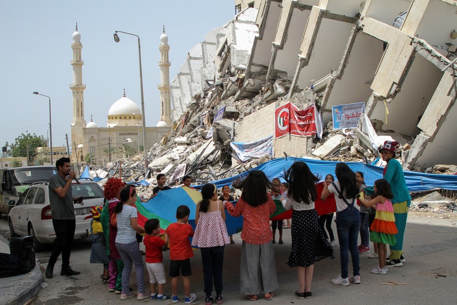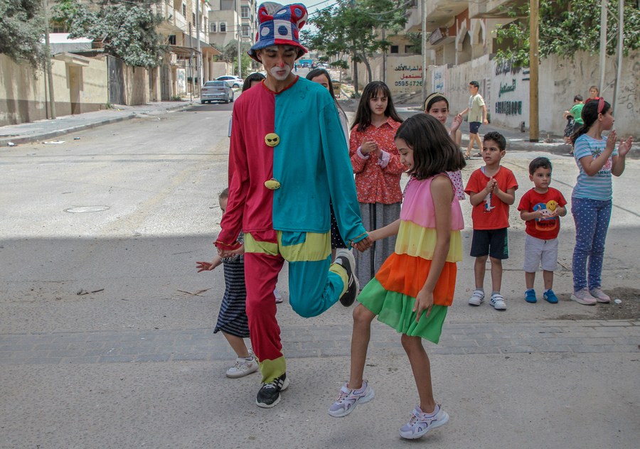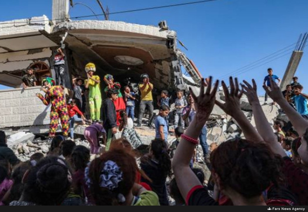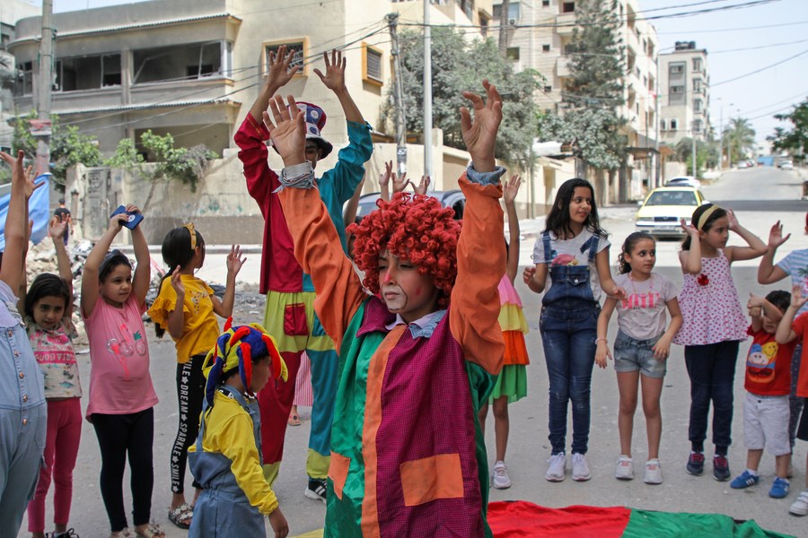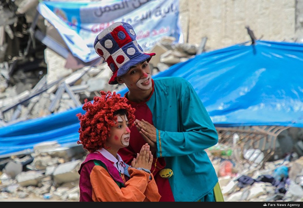 : Palestinian Brothers Entertain kids in Rubles of Gaza after Israeli 12-Day Aggression