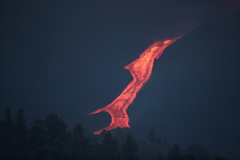 Rivers of Red Hot Lava Flow from La Palma Volcano