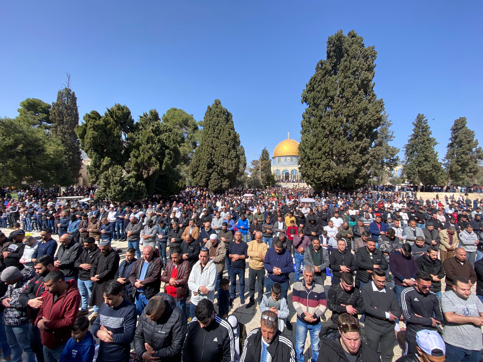Over 80 Thousands of Palestinians Attend First Friday Prayer of Ramadan in Al-Aqsa Mosque