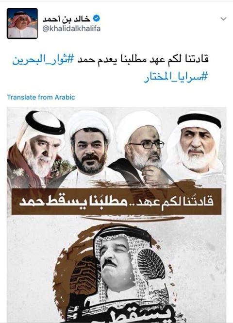 Bloodied bodies, demolished mosques and what appeared to be a child’s illustration of war rolled down the official Twitter page of Foreign Minister Khaled bin Ahmad al-Khalifa, a member of the royal family.