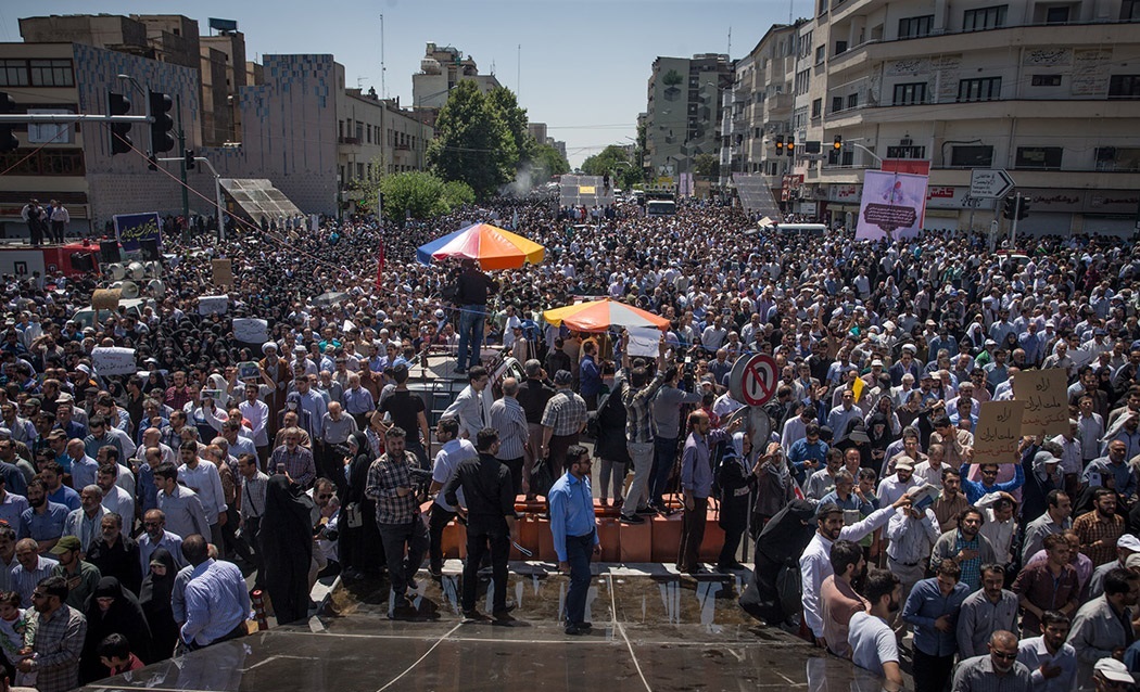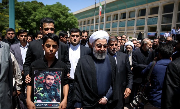 Alwaght- Decenas de miles de iraníes participan en el funeral de los 13 muertos de los atentados terroristas del pasado miércoles. Los terroristas de Daesh abrieron fuego contra los civiles indefensos y fuerzas de seguridad en dos ataques en el Parlamento iraní y en el santuario del Imam Jomeini, al sur de Teherán.