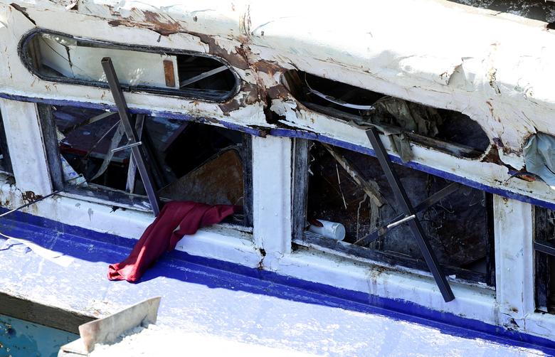 در پی برخورد این کشتی با قایق مذکور واژگون شده و در رودخانهای که جریان بسیار قوی داشته و در شهری با بارانهای شدید واقع شده، غرق میشود.