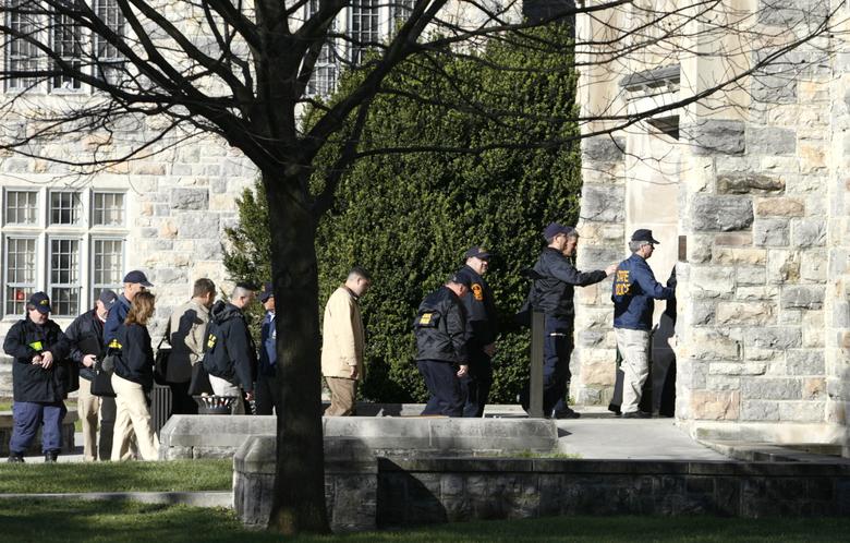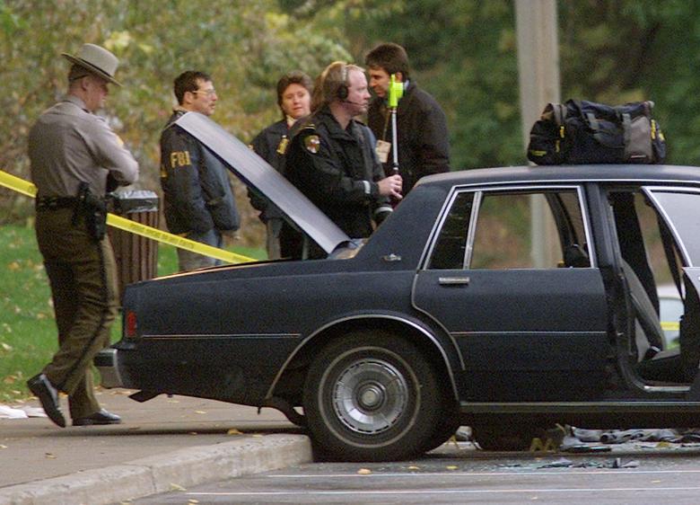 پلیس میگوید مظنون این تیراندازی را که یک مرد جوان سفیدپوست است بازداشت کرده، جوانی که رسانههای آمریکا هویت او را پاتریک کروشس شناسایی کردهاند. پلیس هنوز هویت مظنون اصلی را رسما اعلام نکرده اما گفته او را بدون این که ماموران پلیس به سویش شلیک کنند بازداشت کرده است.