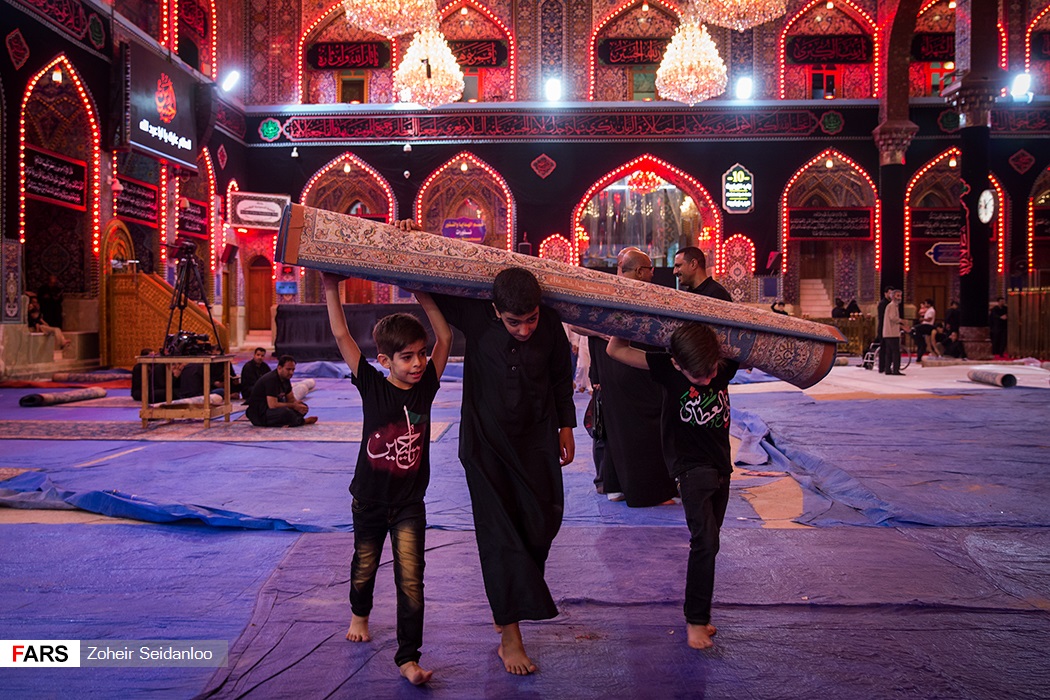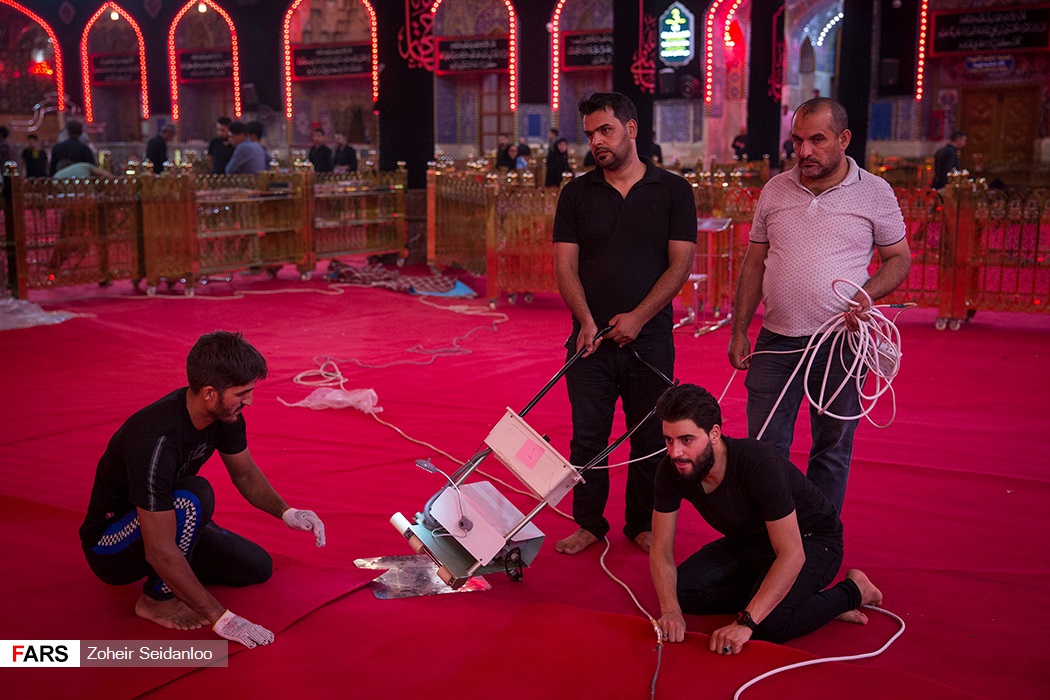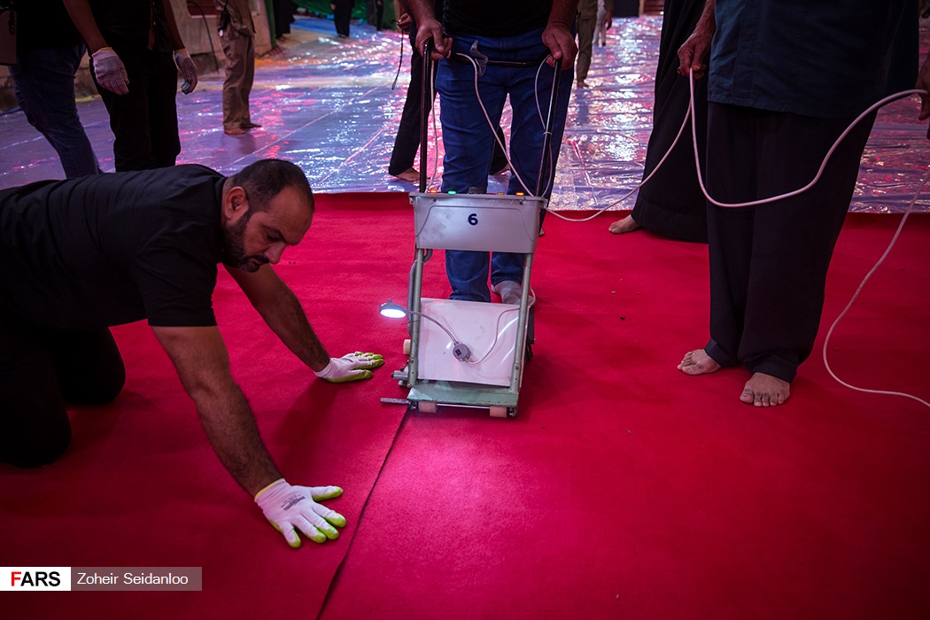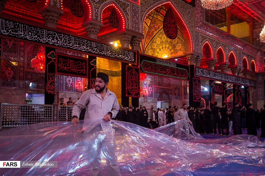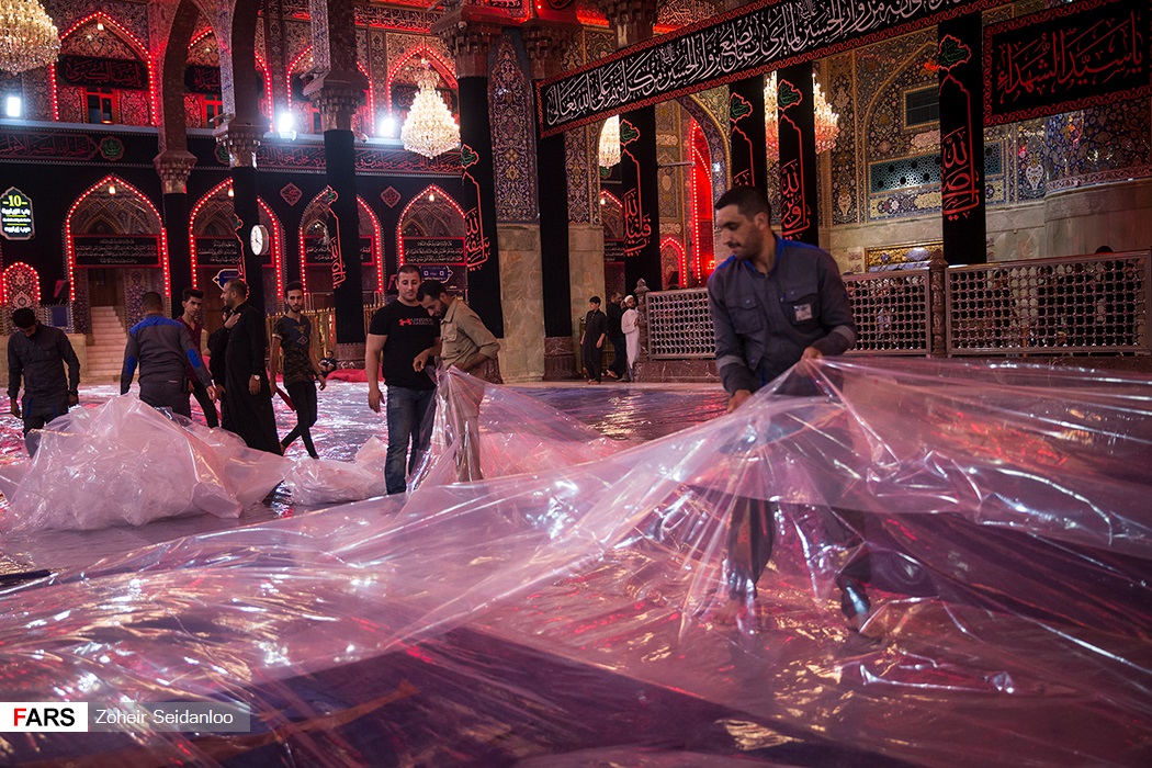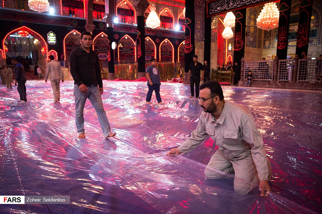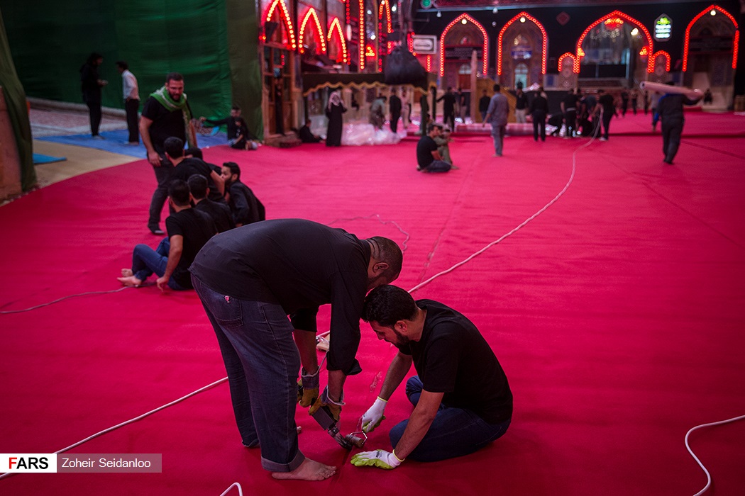 صحن حرم مطهر امام حسین(ع) به منظور استقبال از جمعیت میلیونی زائران و عزاداران محرم و اربعین و تسهیل تردد با فرش قرمز مفروش شد.