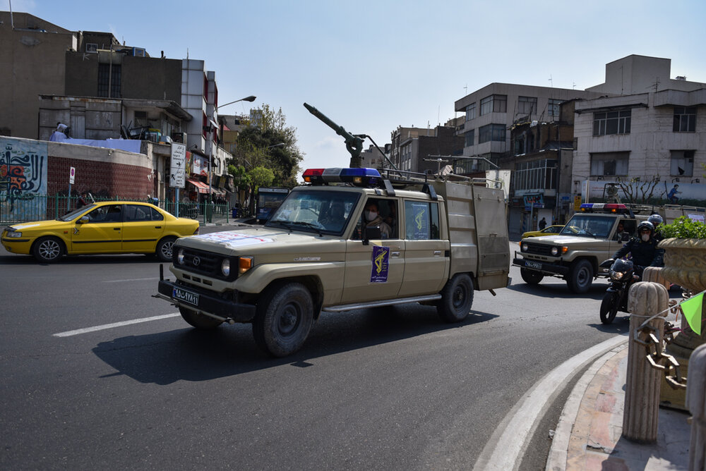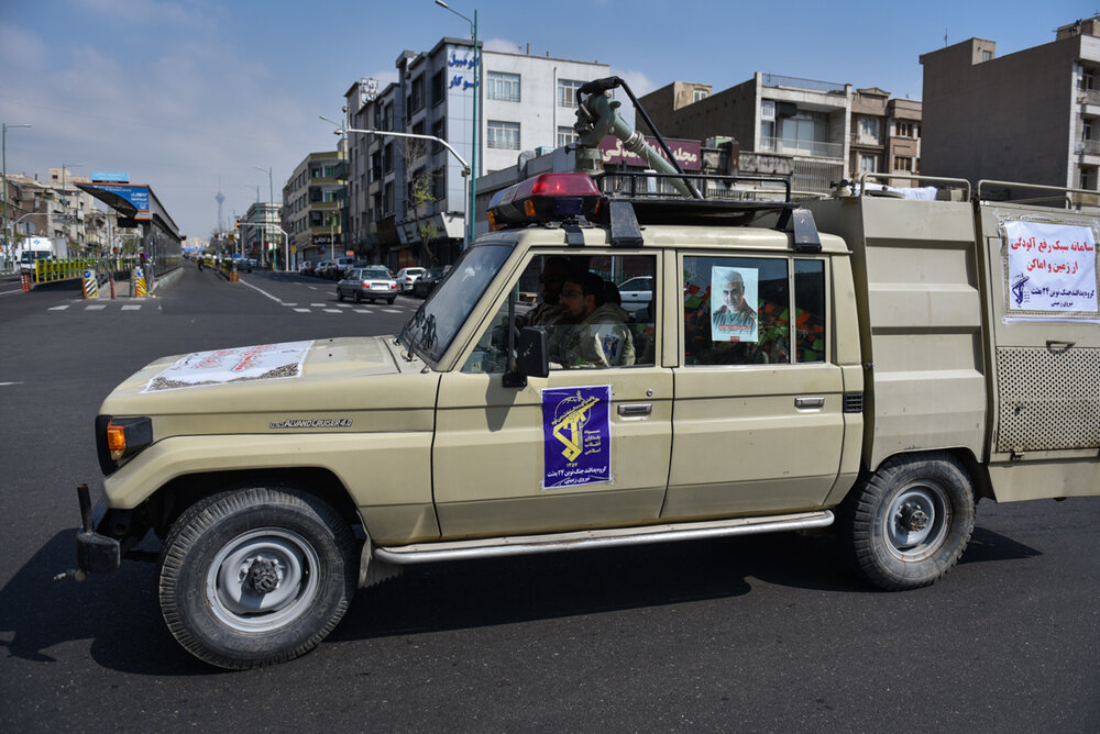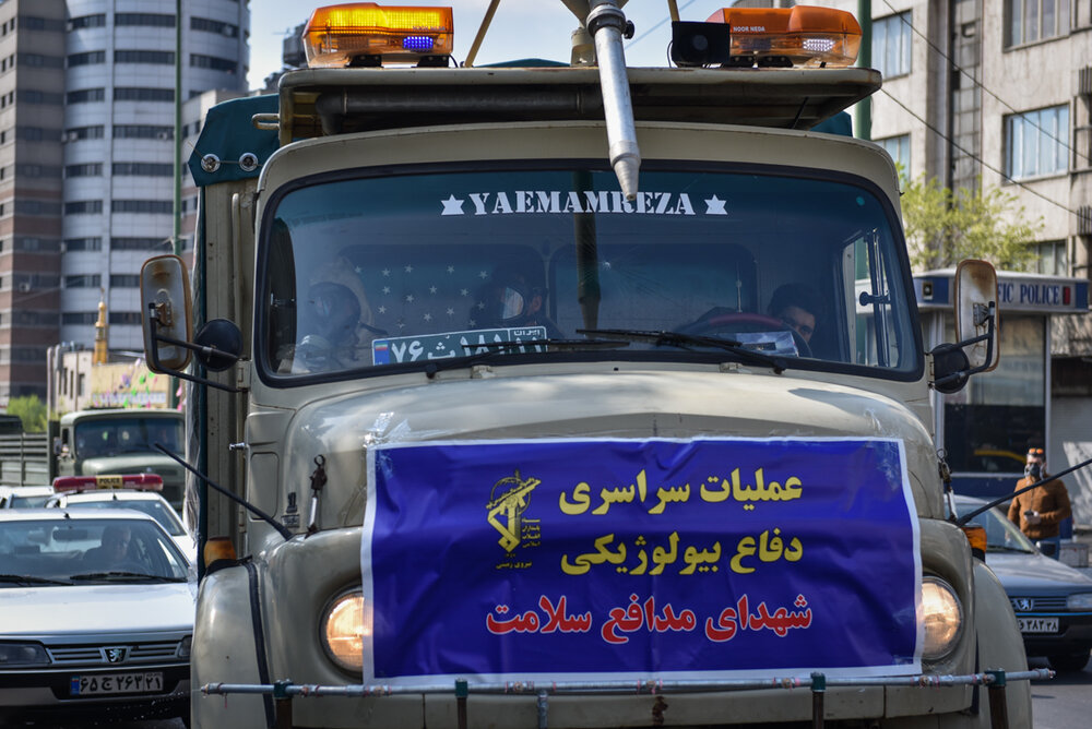 رزمایش دفاع بیولوژیک و عملیات پاکسازی محیطی شهدای مدافع سلامت نیروی زمینی سپاه پاسدارن انقلاب اسلامی از ششم فروردین همزمان با سراسر کشور در تهران برگزار شد.