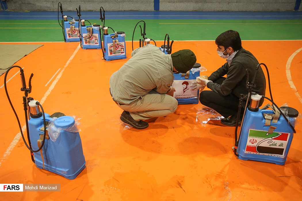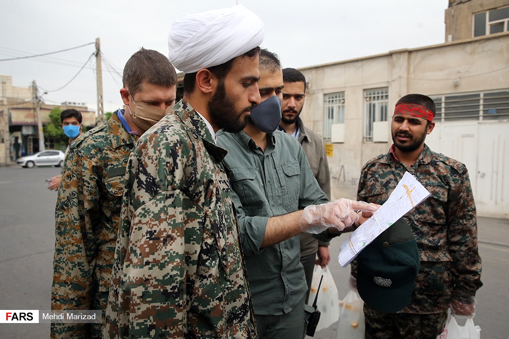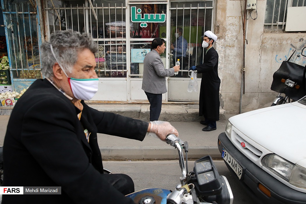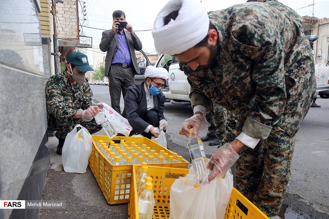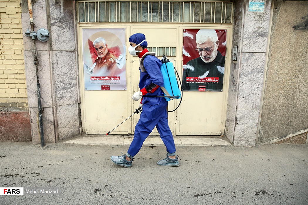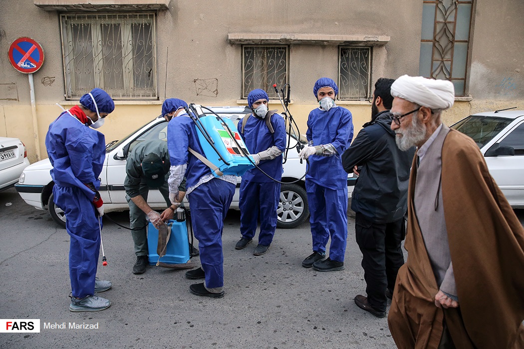 جمعی از نیروهای حشدالشعبی عراق عصر شنبه ۱۶ فروردین ۱۳۹۹ با حضور در مناطق مختلف شهر قم اقدام به ضدعفونی معابر در برابر بیماری کرونا کردند.