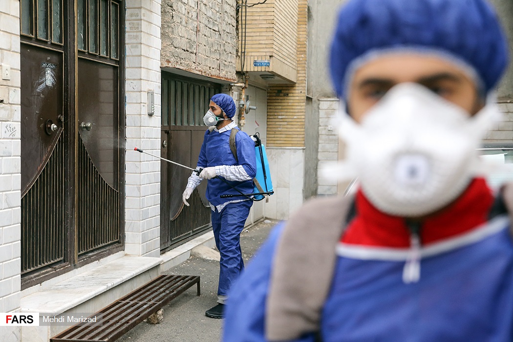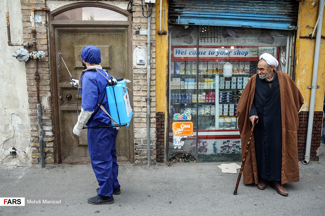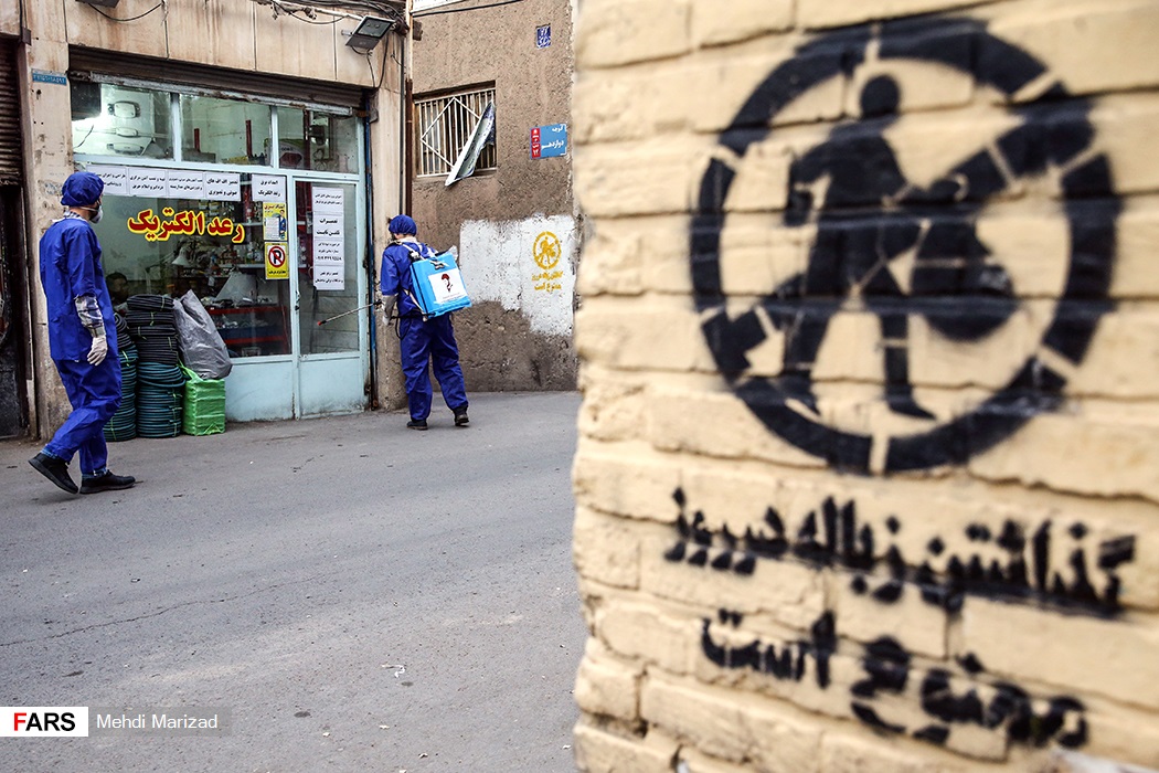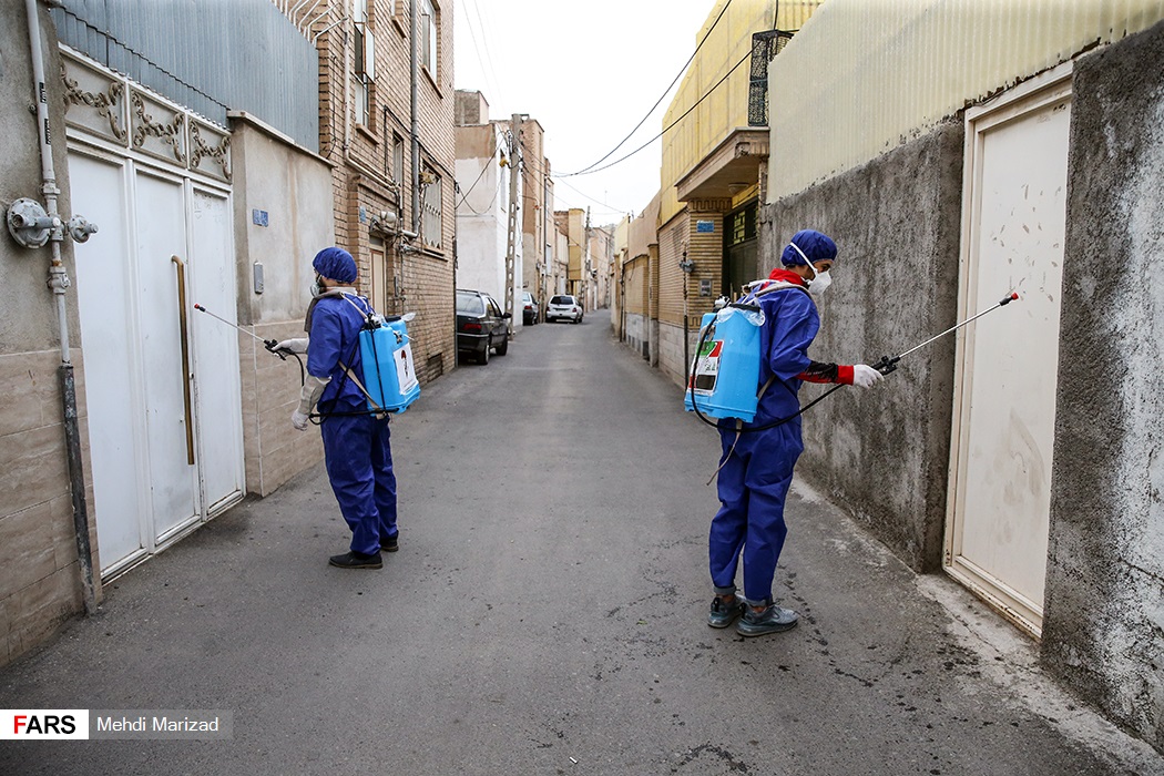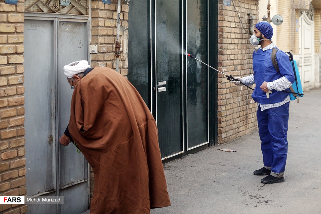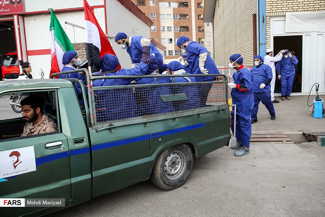 جمعی از نیروهای حشدالشعبی عراق عصر شنبه ۱۶ فروردین ۱۳۹۹ با حضور در مناطق مختلف شهر قم اقدام به ضدعفونی معابر در برابر بیماری کرونا کردند.