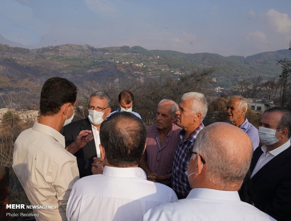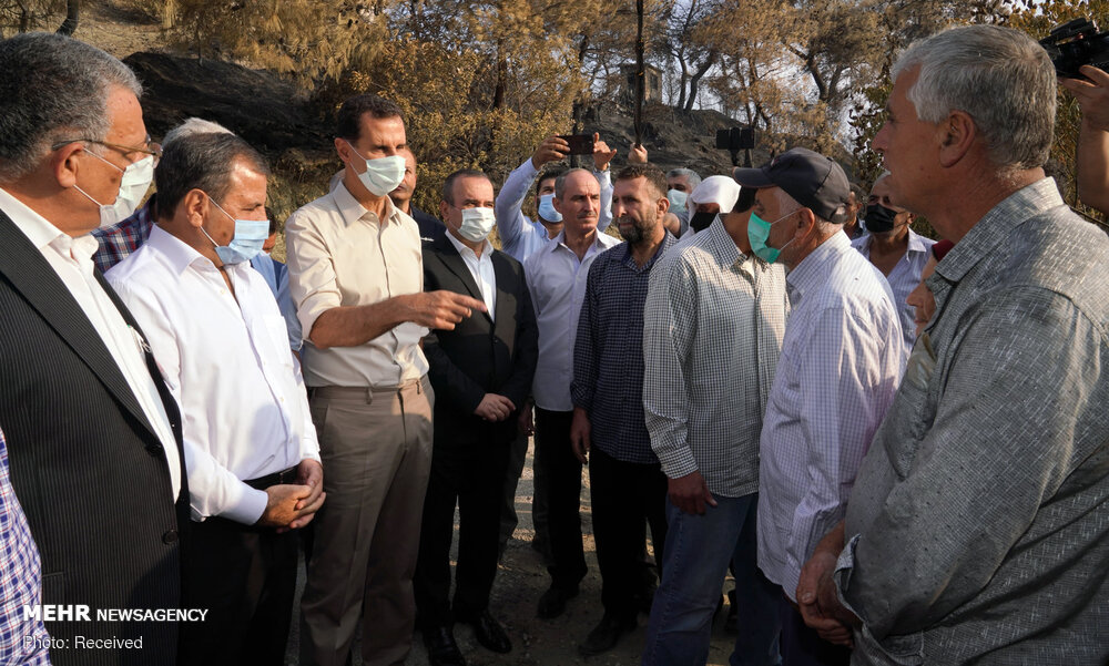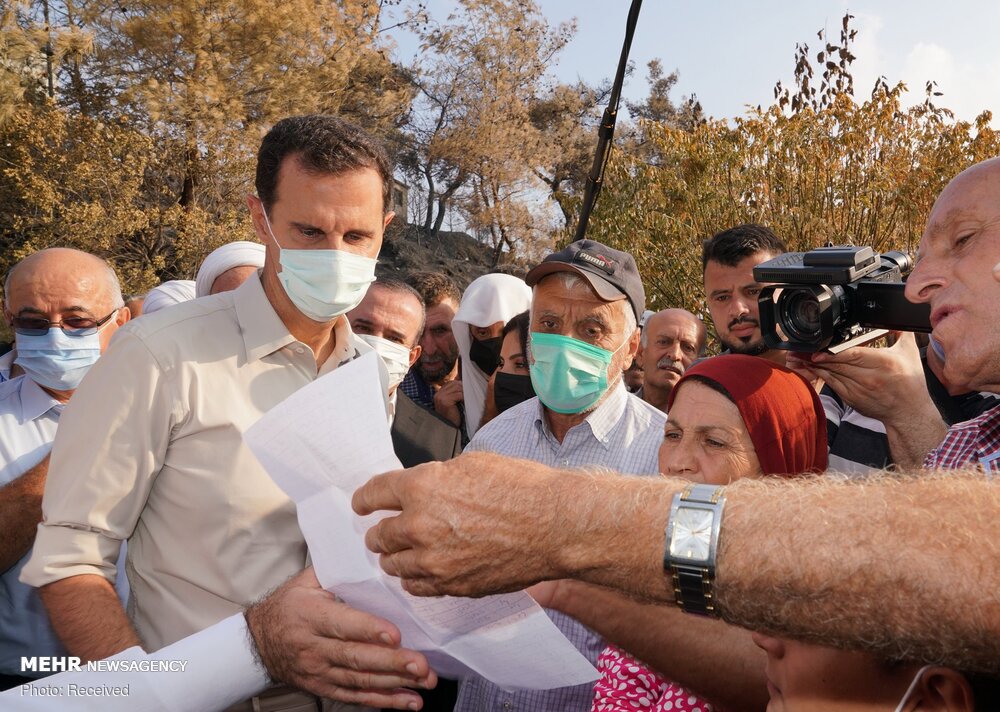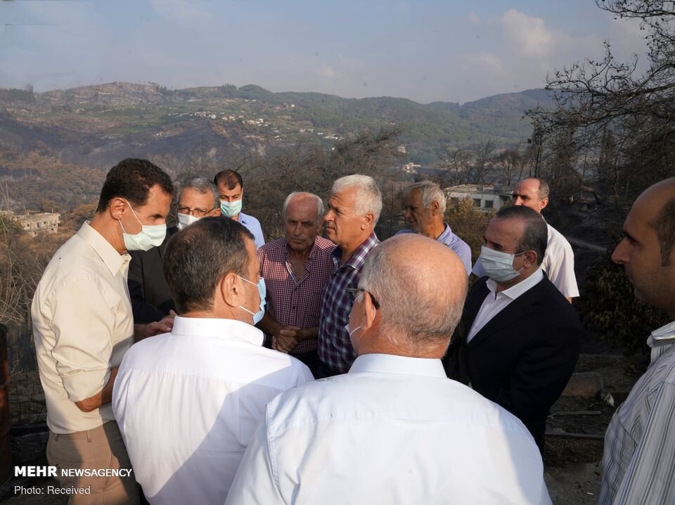 «بشار اسد» رئیس جمهور سوریه با حضور در مناطقی که طعمه آتش‌سوزی‌های اخیر در حومه لاذقیه شدند، از نزدیک با اهالی مناطق دیدار و گفت‌وگو کرد. 1399/07/26