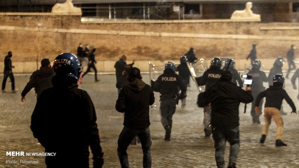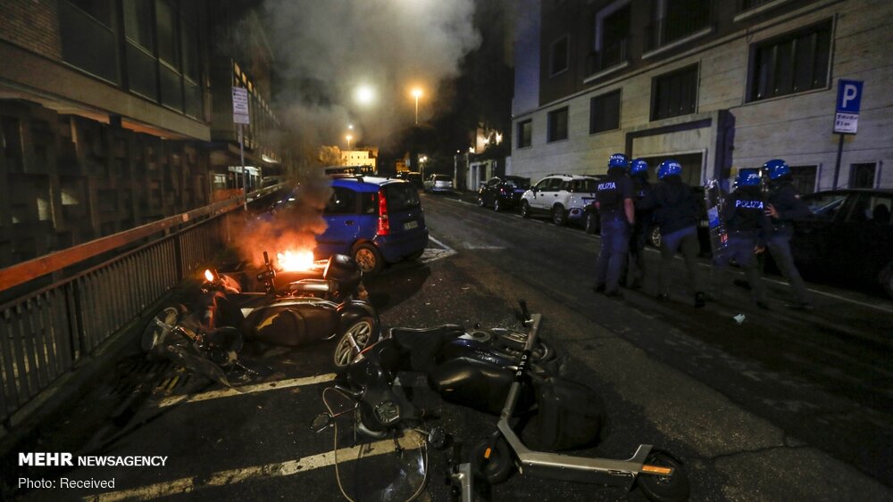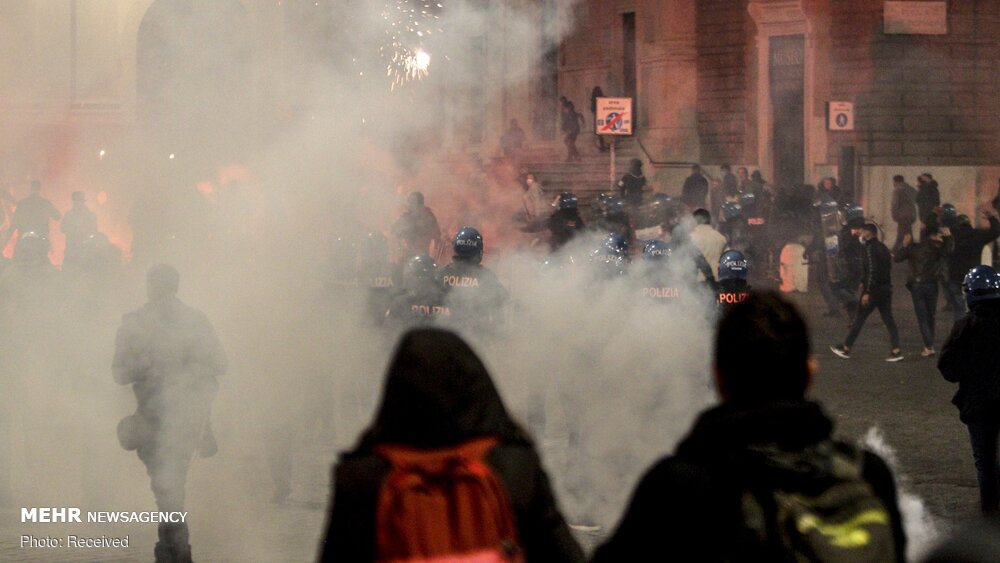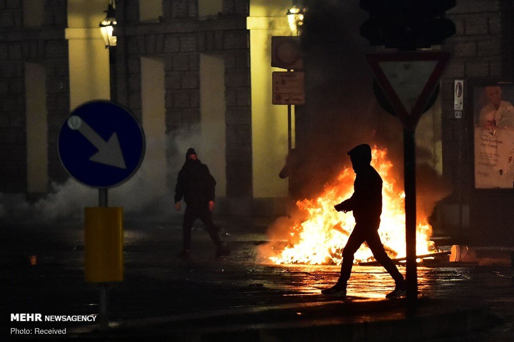 اعتراض گسترده و خشن در ایتالیا علیه سخت گیری های کرونایی