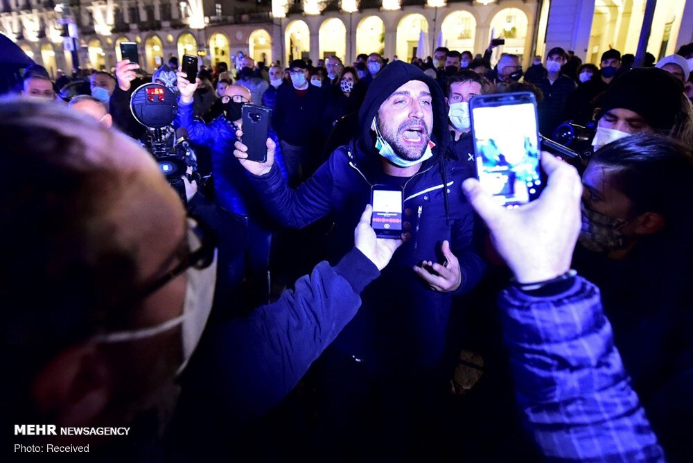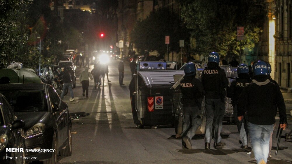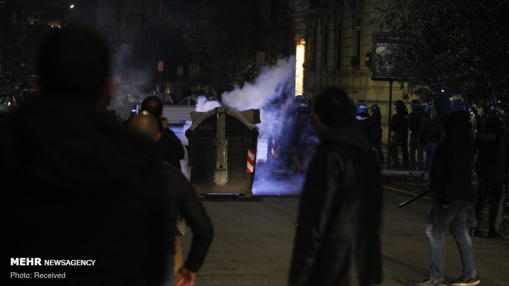 هزاران نفر در شهر ناپل ایتالیا که شمار زیادی از آنها را صاحبان رستورانها و قهوه خانهها شهر تشکیل میدادند، با آغاز شروع نخستین شب منع عبور و مرور شبانه در این کشور تظاهرات کردند.