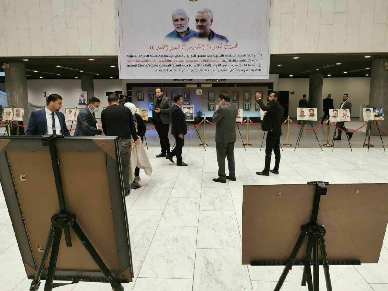 مراسم گرامیداشت اولین سالگرد شهادت فرماندهان شهید «حاج قاسم سلیمانی» و «ابومهدی المهندس» در پارلمان عراق برگزار شد. این مراسم با حضور شماری از شخصیت‌های سیاسی مانند‌هادی العامری رئیس ائتلاف الفتح و سید عمار حکیم رئیس جریان حکمت ملی عراق و شمار دیگری از شخصیت‌های و نظامی و مسئولان و نیروهای سازمان «الحشد الشعبی» و امنیتی عراق در ساختمان پارلمان این کشور برگزار شد. سالن پارلمان عراق هم به این مناسب به تصاویر بزرگ شهیدان حاج قاسم سلیمانی و ابومهدی المهندس و پرچم‌های الحشد الشعبی مزین شد. 1399/09/29