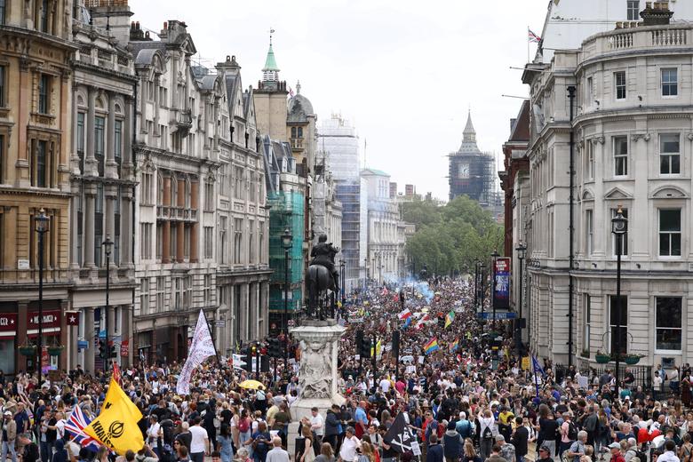 تظاهرات ضد قرنطینه و ضدواکسن کرونا در شهر لندن
