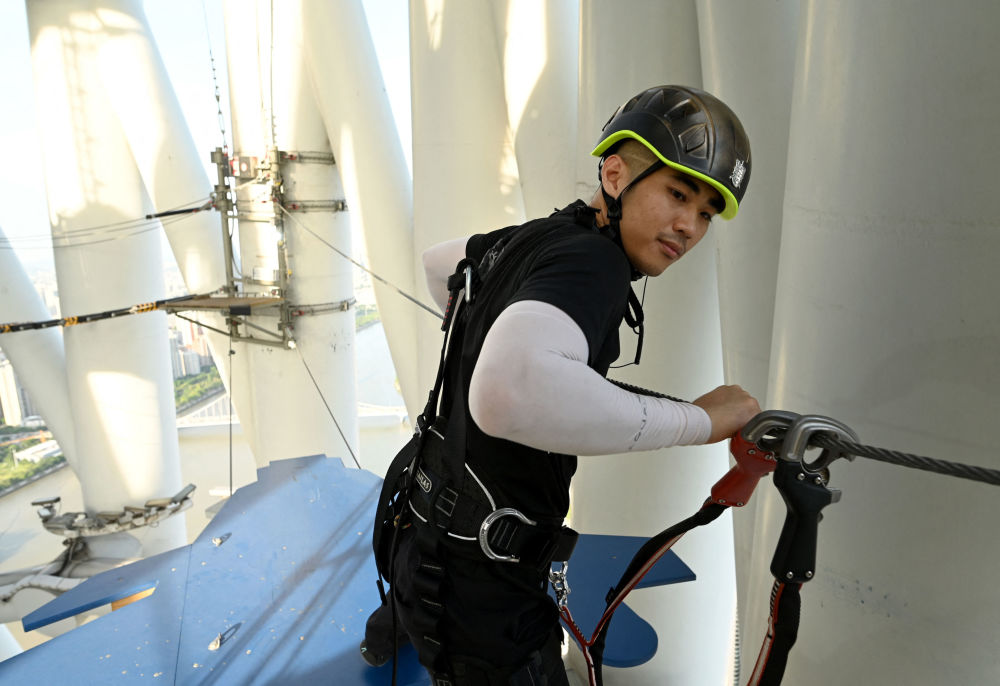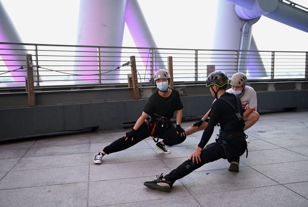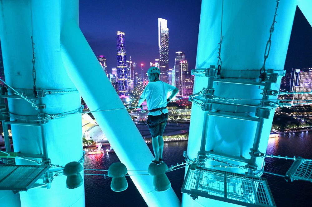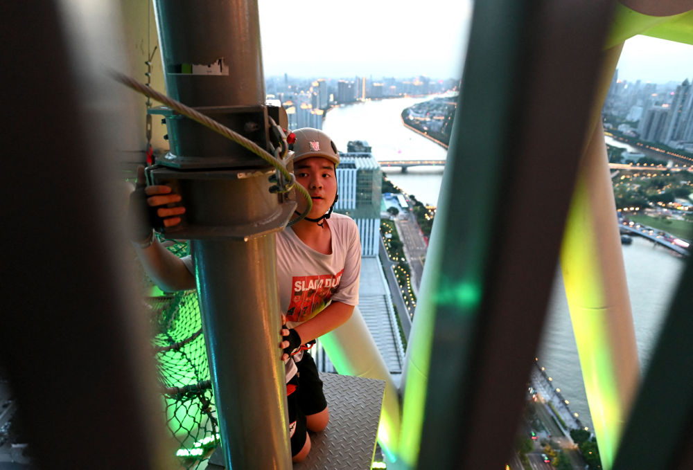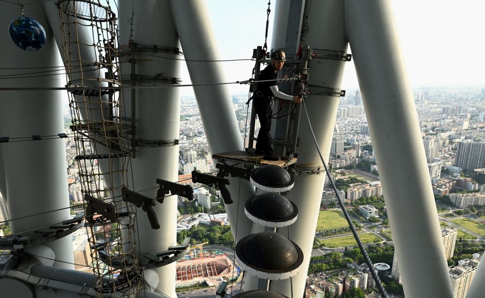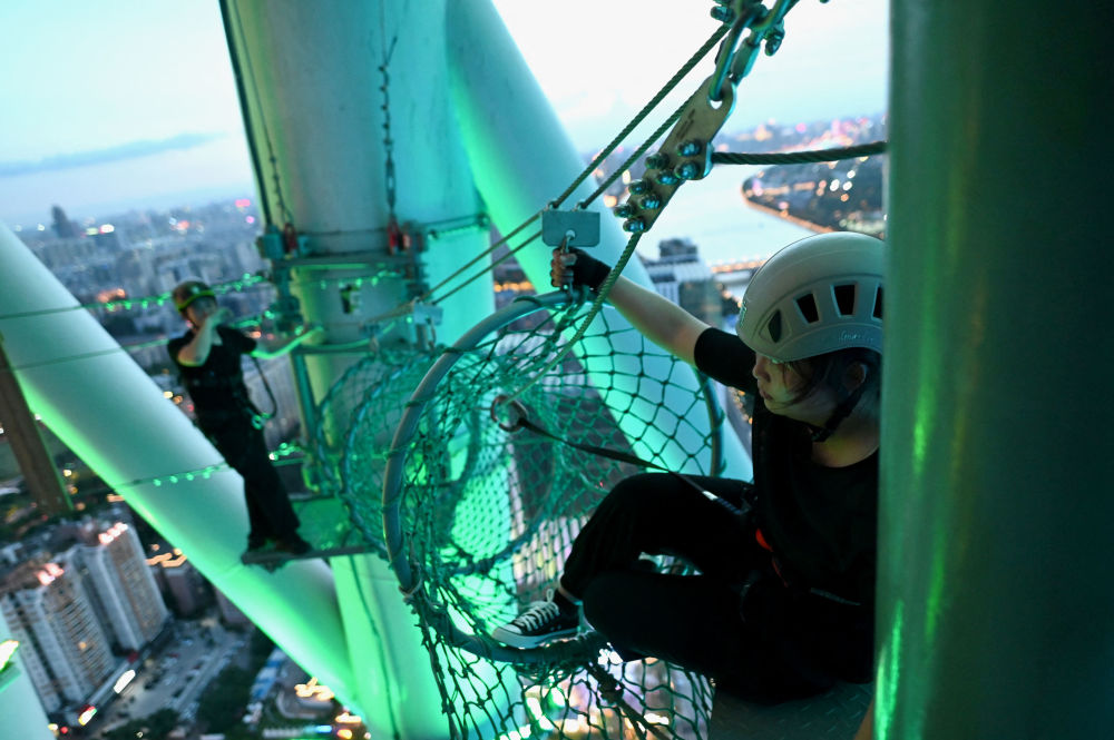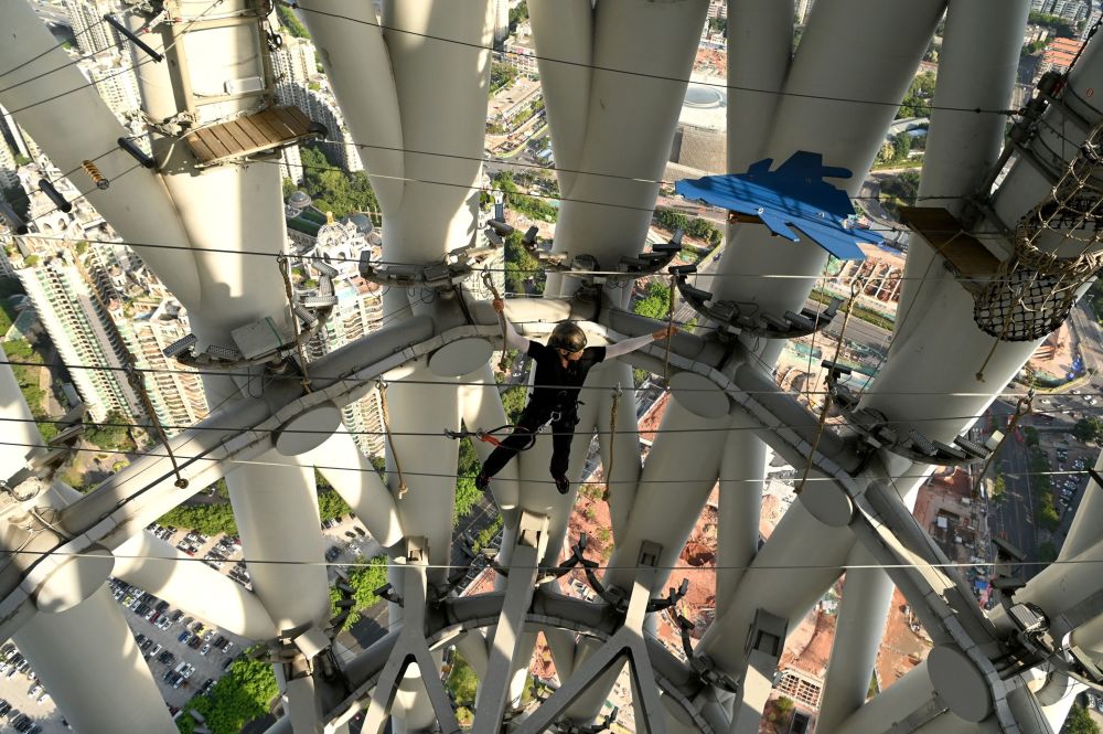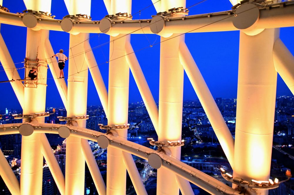 پیاده روی با طناب روی بلندترین برج تلویزیونی چین