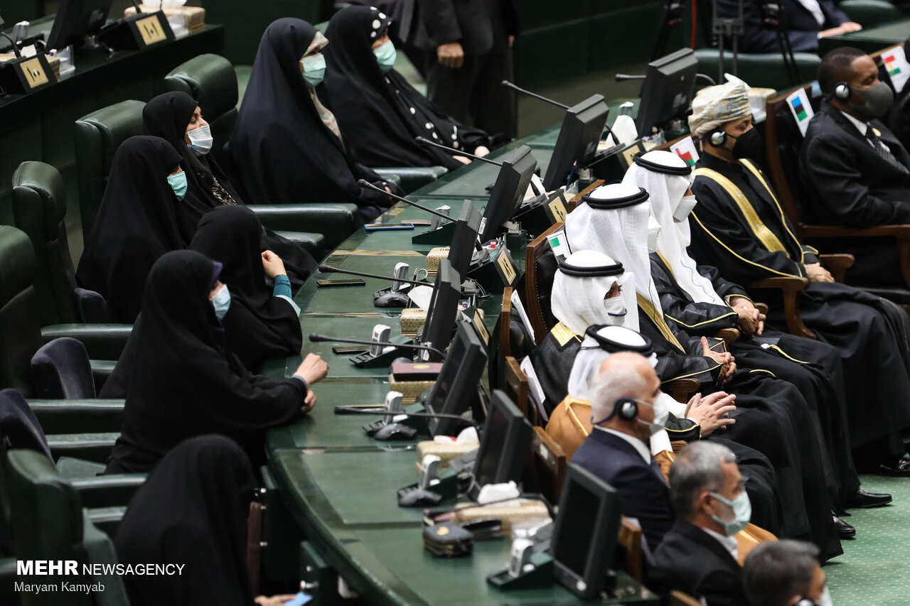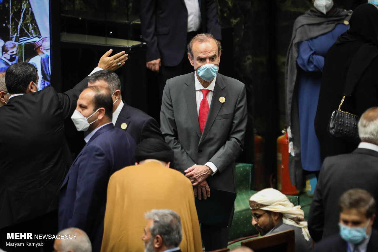 مراسم تحلیف ریاست جمهوری حجت الاسلام والمسلمین سید ابراهیم رئیسی در محل مجلس شورای اسلامی با حضور بیش از ۱۰۰ میهمانان از بیش از ۷۳ کشور آغاز شد.
