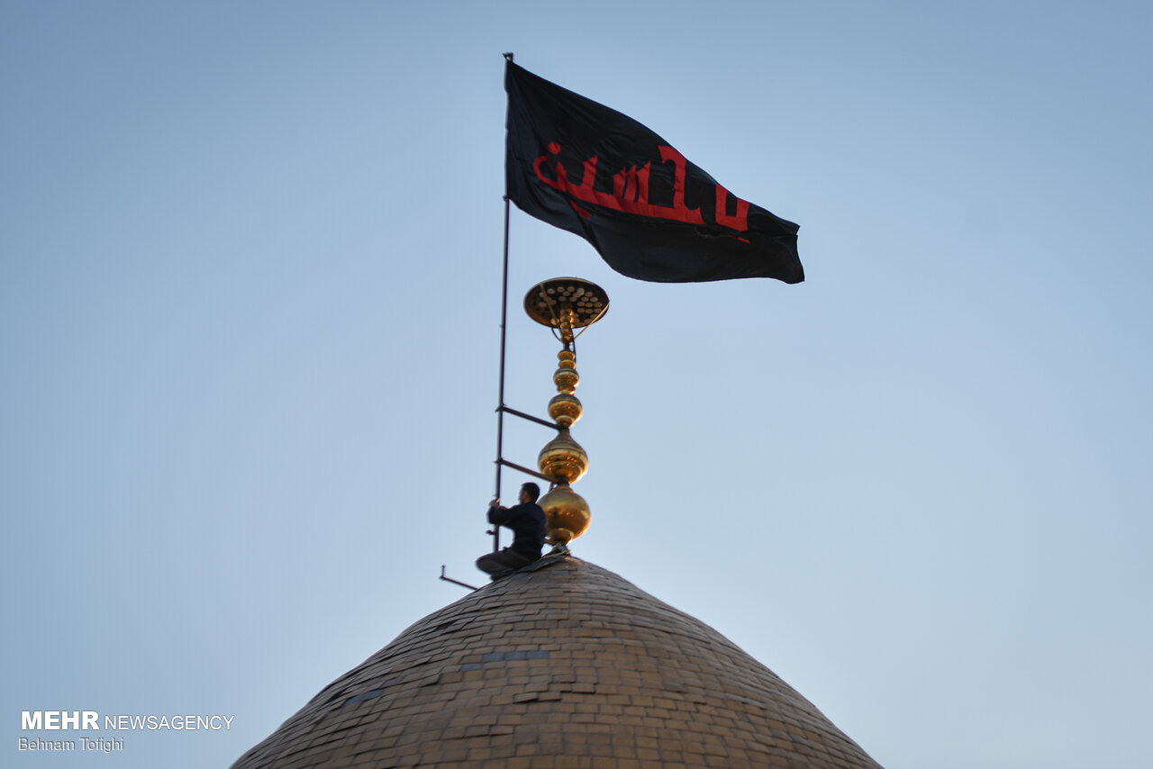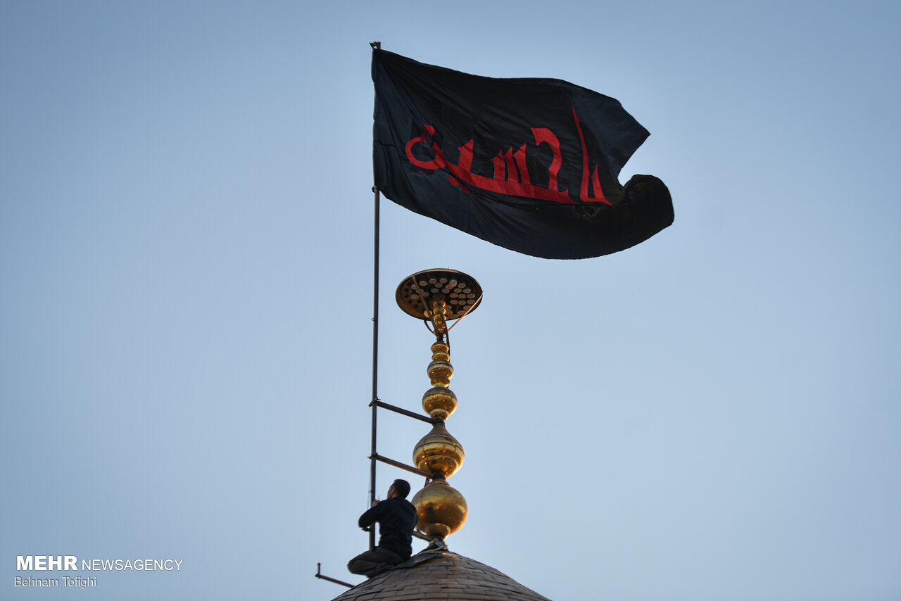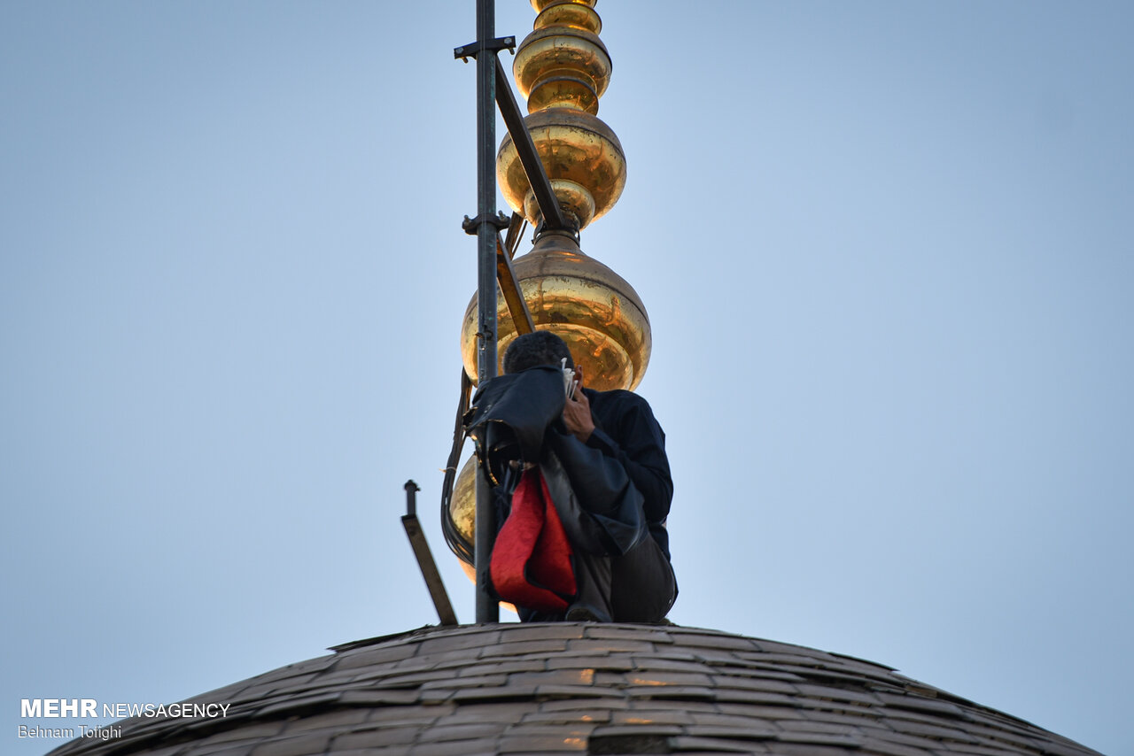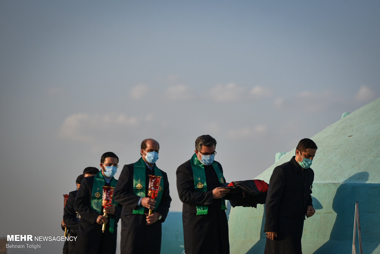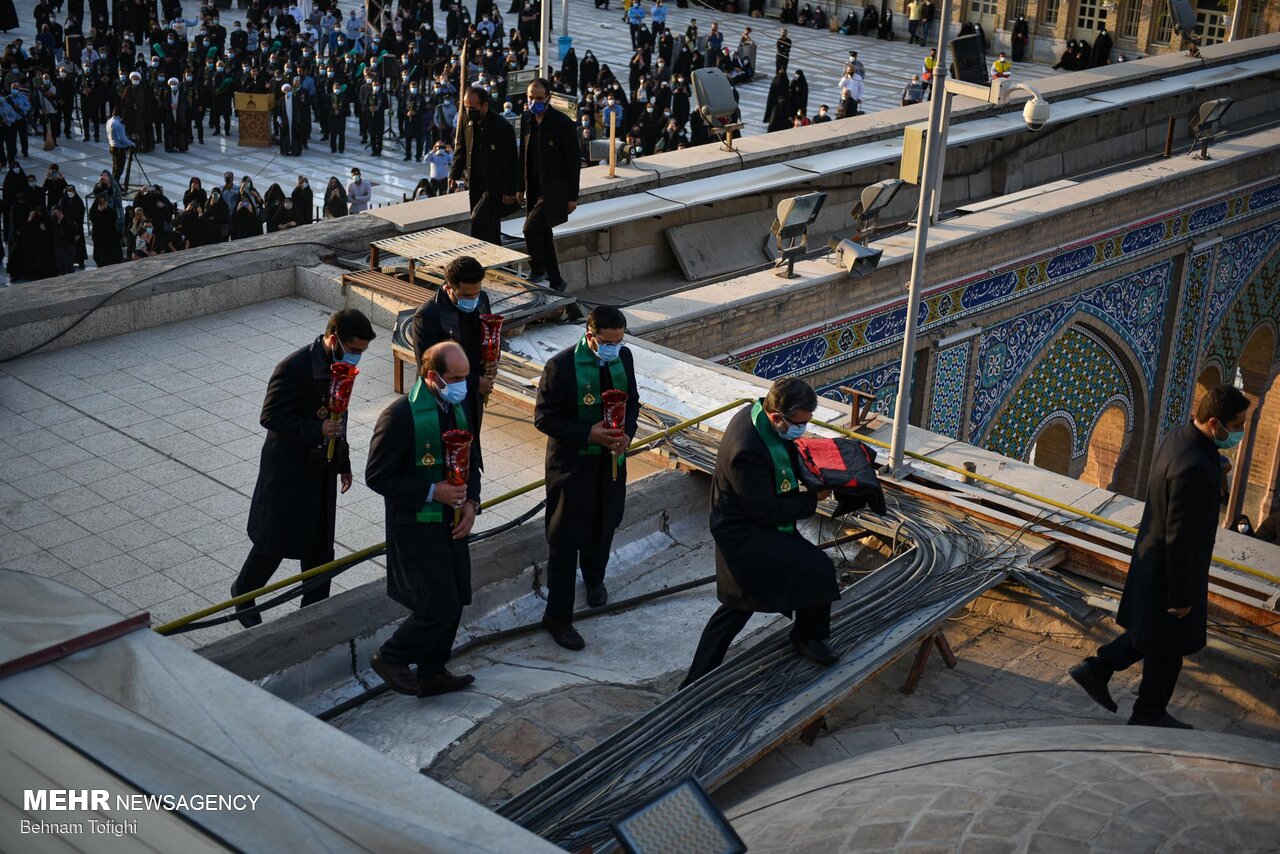 پرچم گنبد حرم امام حسین (ع) برفراز بارگاه حضرت عبدالعظیم (ع) شهرری