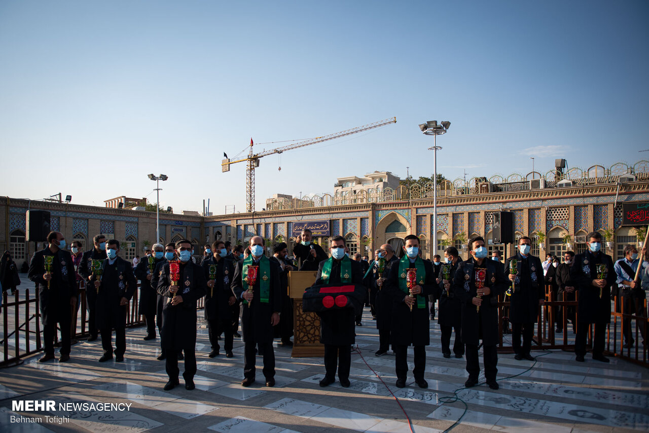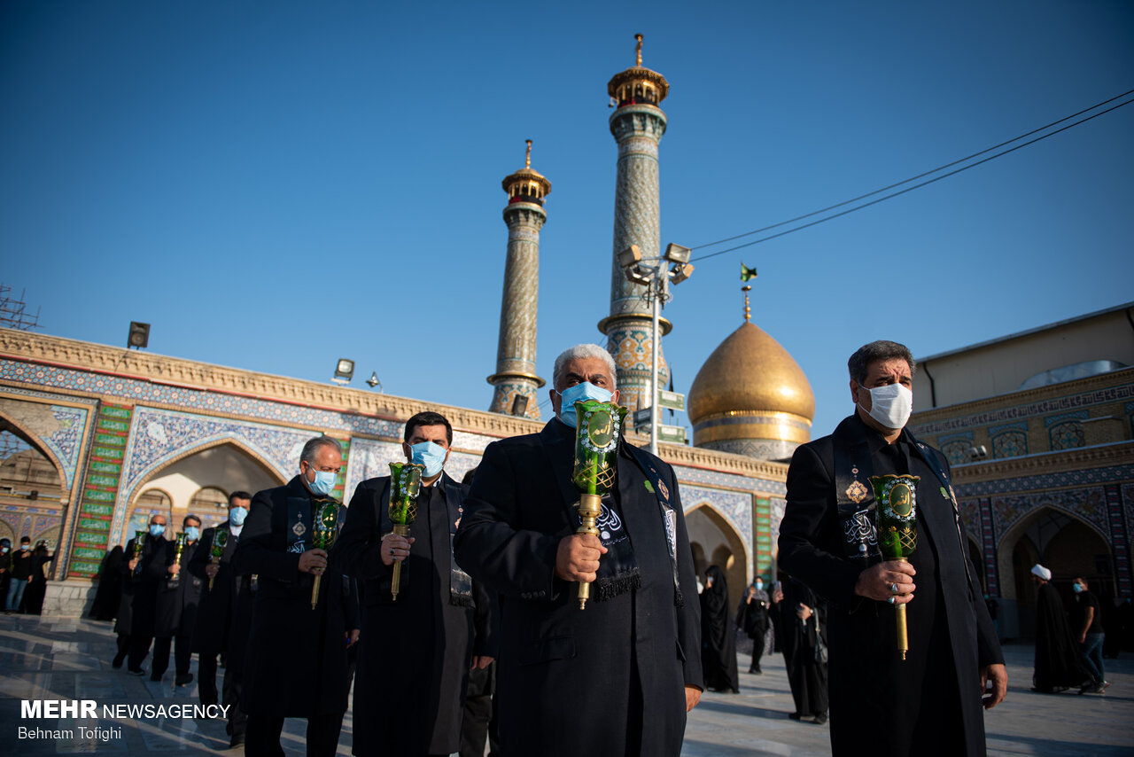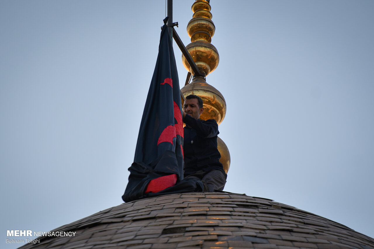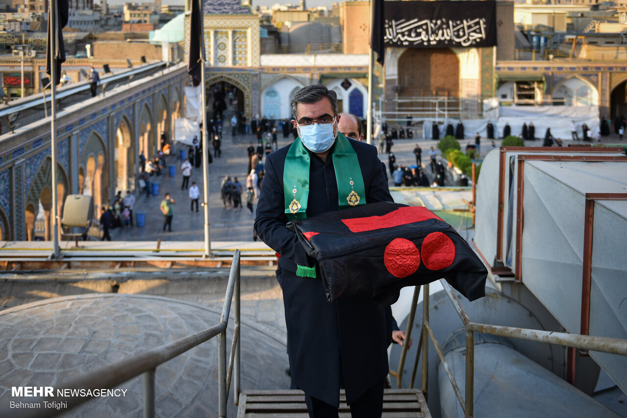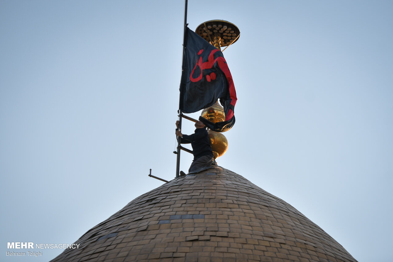 پرچم گنبد حرم امام حسین (ع) برفراز بارگاه حضرت عبدالعظیم (ع) شهرری
