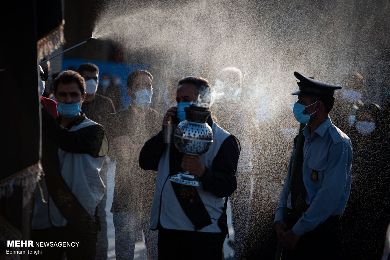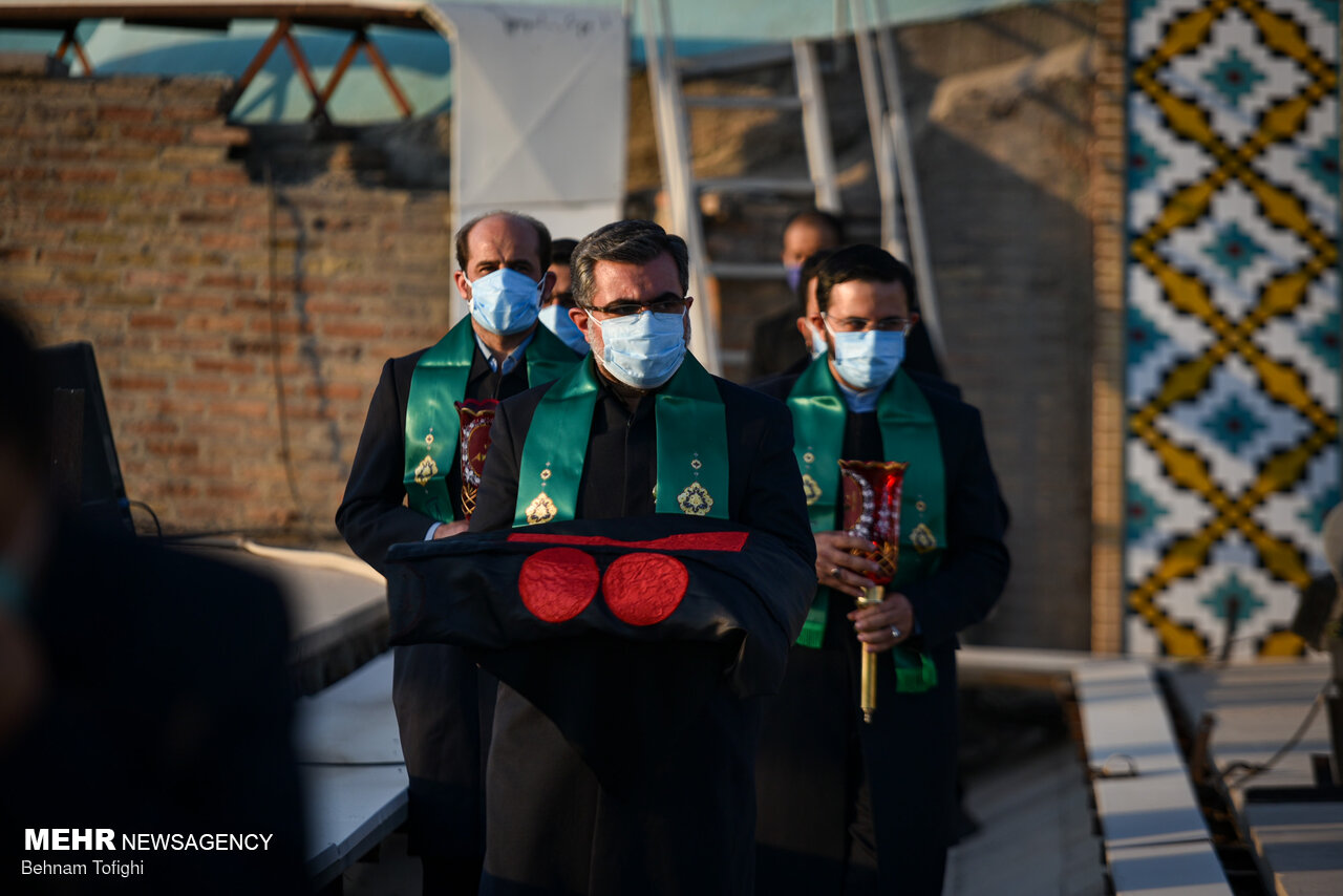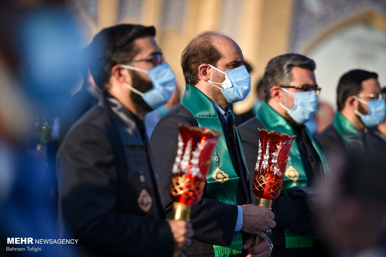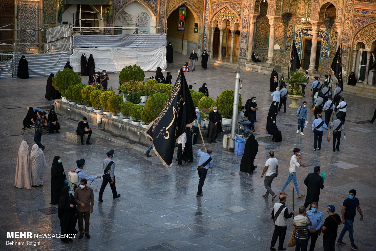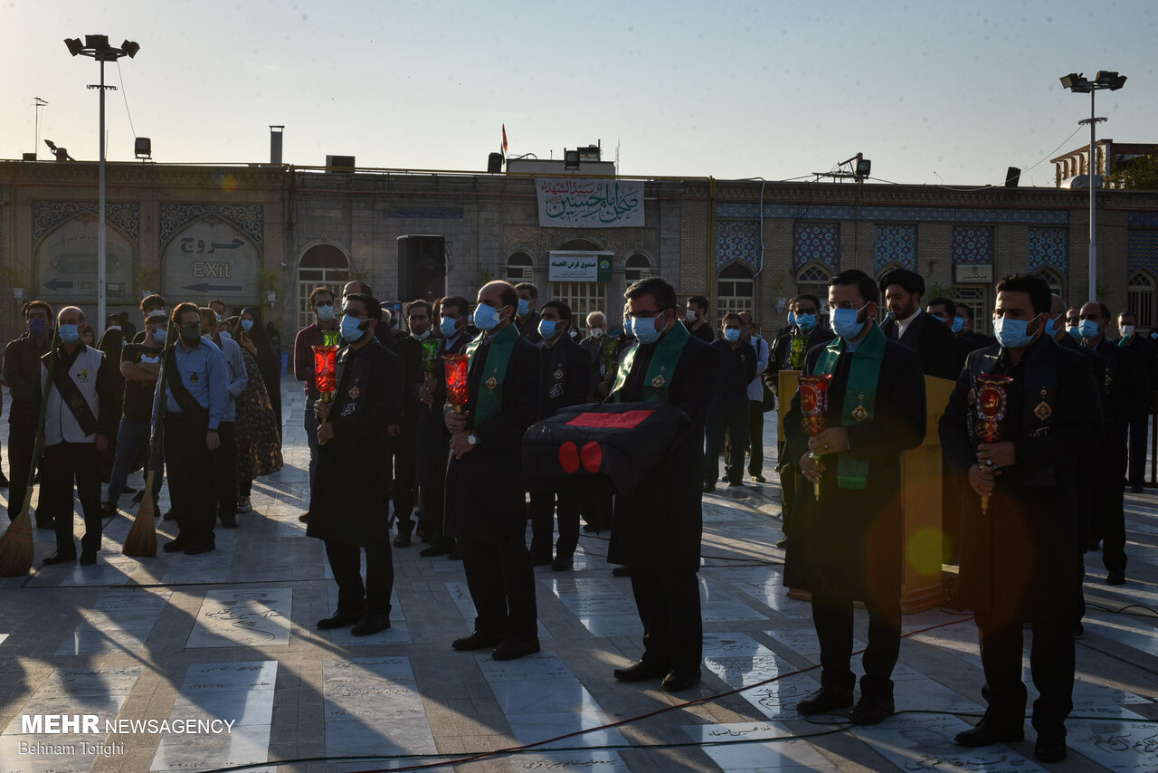 پرچم گنبد حرم امام حسین (ع) برفراز بارگاه حضرت عبدالعظیم (ع) شهرری