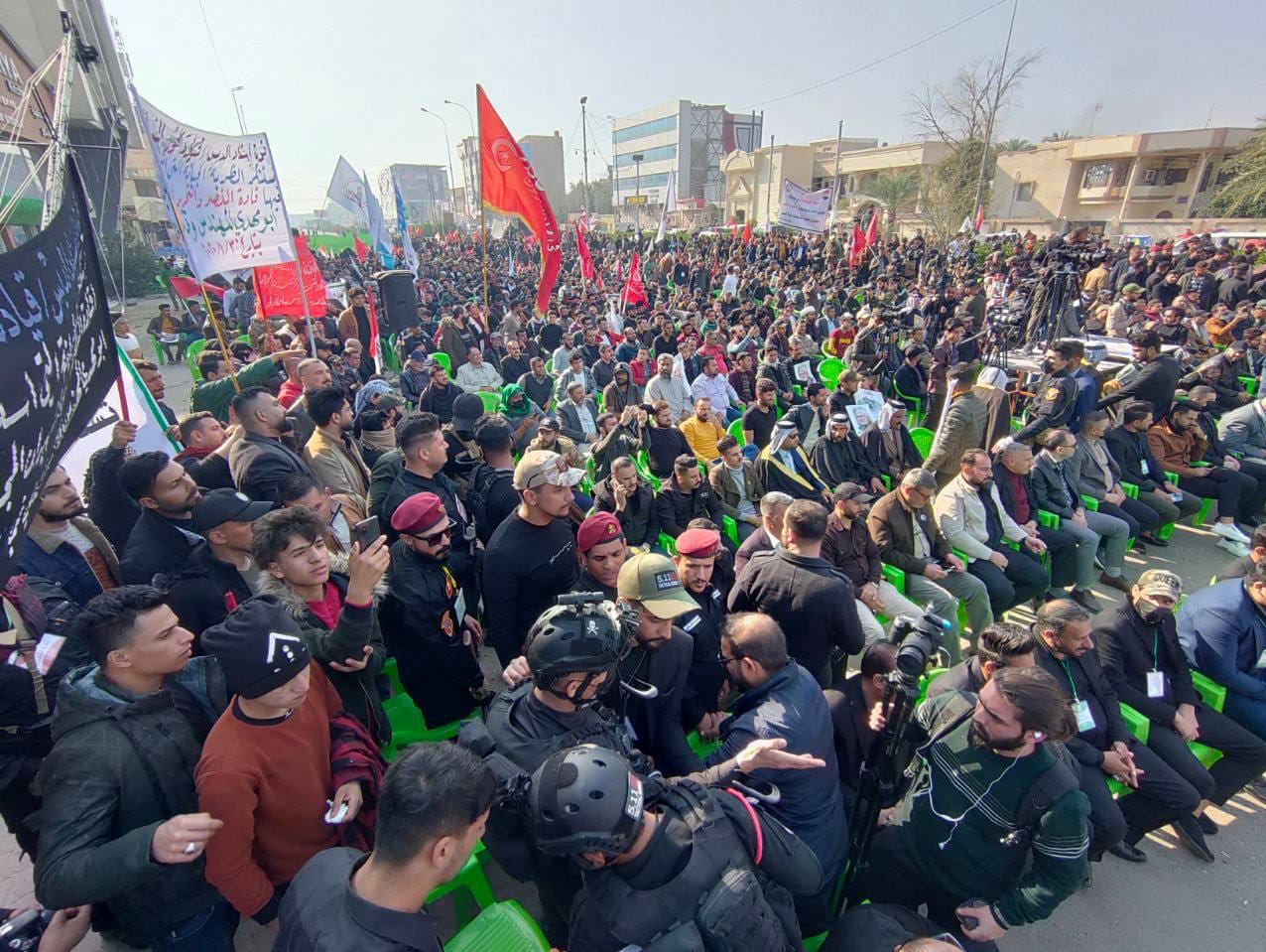 ده‌ها هزار نفر از مردم عراق امروز در شهر بصره در جنوب این کشور به مناسبت دومین سالگرد شهادت شهیدان حاج قاسم سلیمانی و ابومهدی المهندس اجتماع بزرگی برپا کردند. 1400/10/18