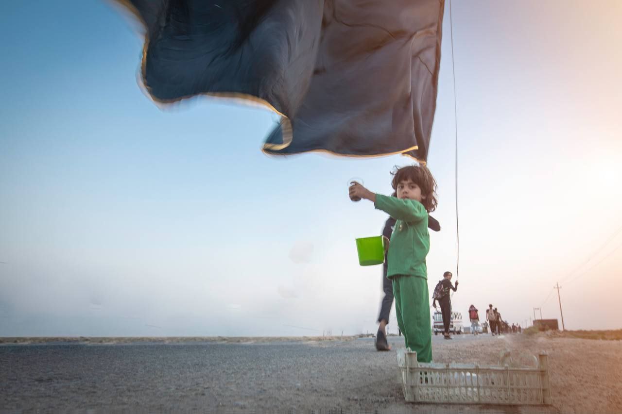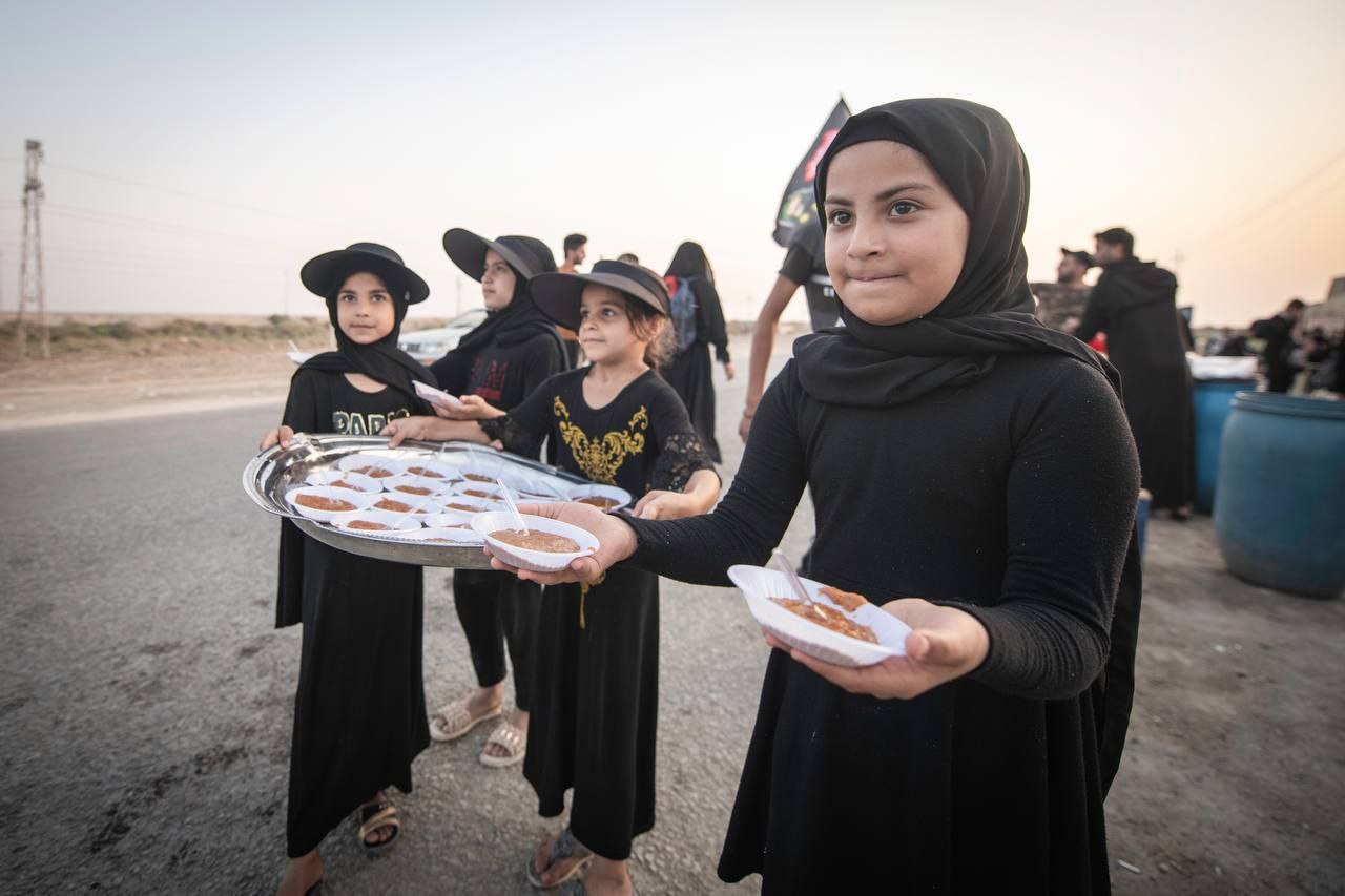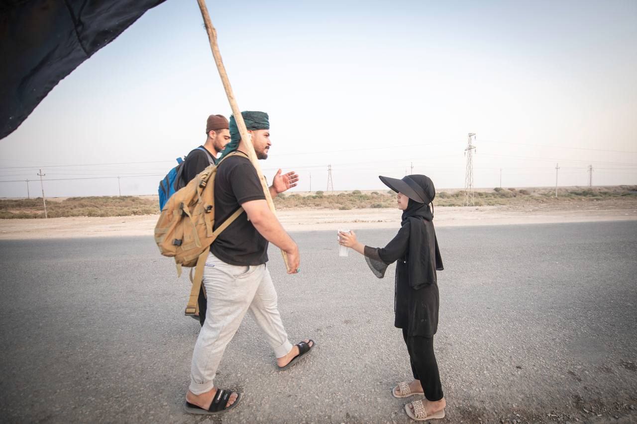 زائران اربعین حسینی از نقاط مختلف عراق به سمت کربلا با پای پیاده حرکت می کنند و خدمتگزاران به زائران حسینی نیز به میزبانی از آنها می پردازند.