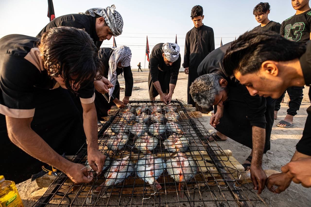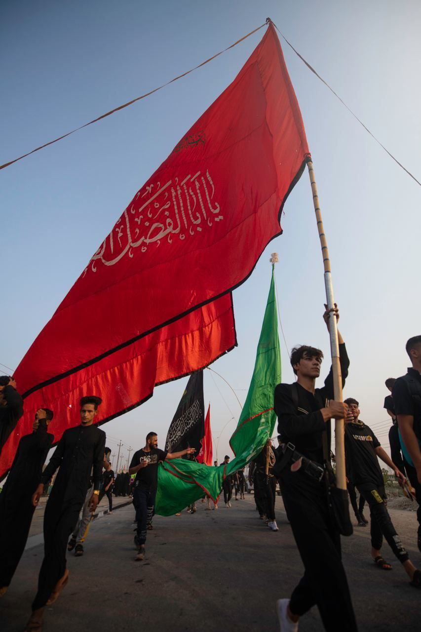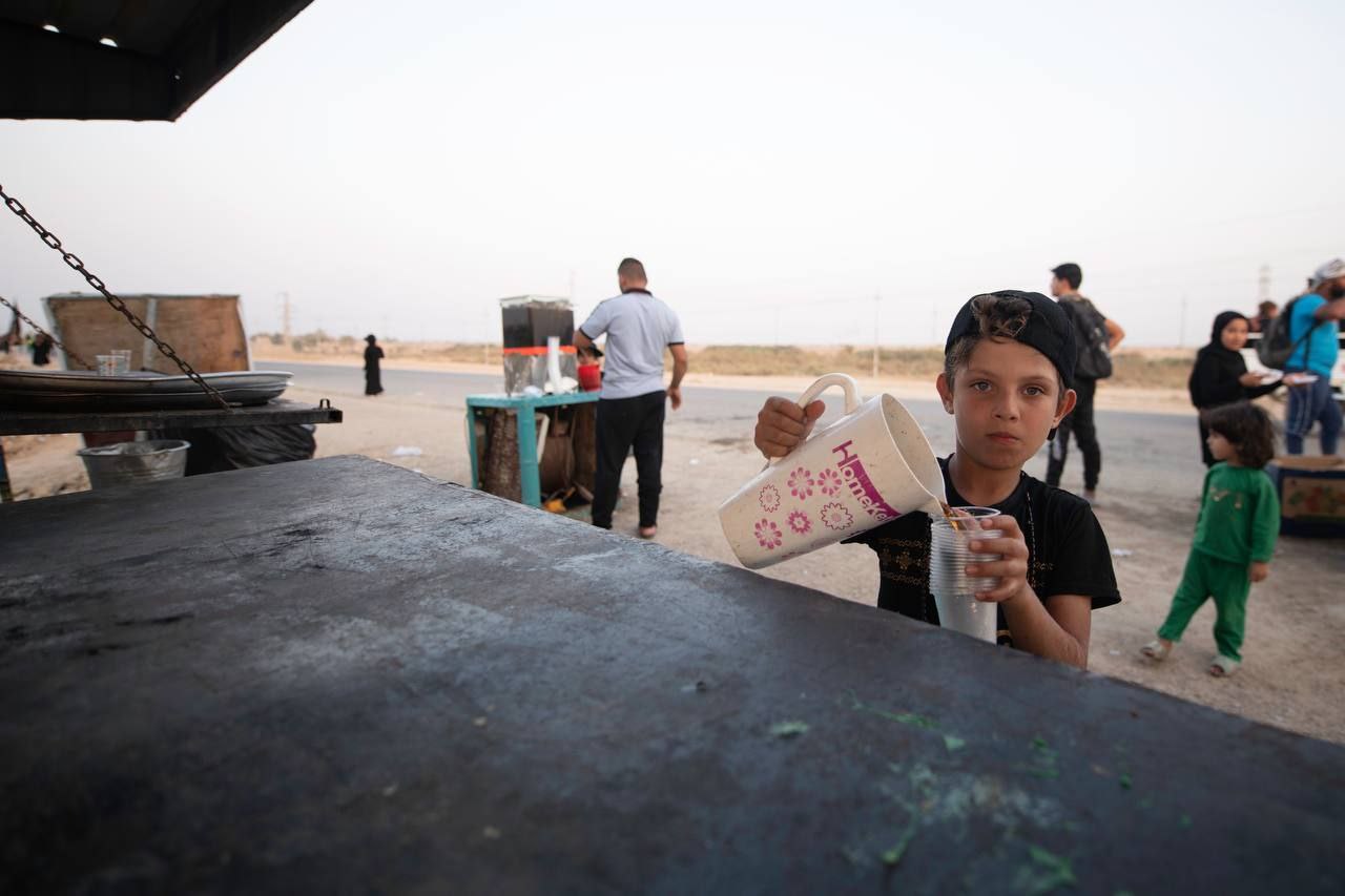 زائران اربعین حسینی از نقاط مختلف عراق به سمت کربلا با پای پیاده حرکت می کنند و خدمتگزاران به زائران حسینی نیز به میزبانی از آنها می پردازند.