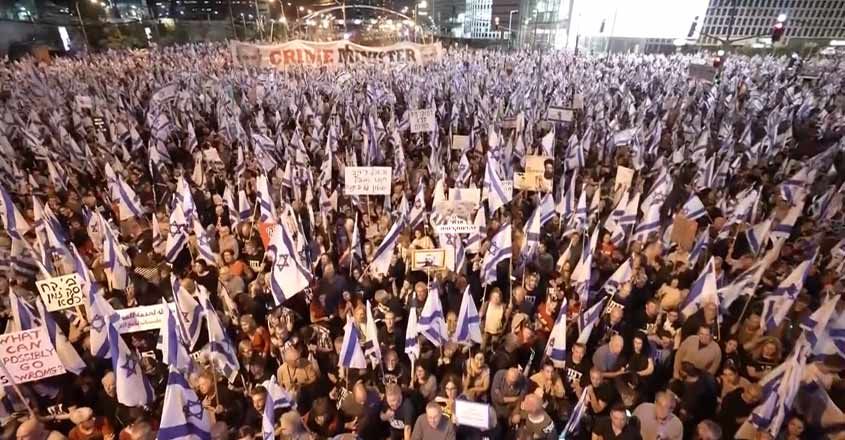 تظاهرات در تل آویو در حالی از سرگرفته شده است که مناطق اشغالی فلسطین طی روزهای اخیر صحنه شدیدترین خشونتها و درگیریها با مقاومت فلسطین در نوار غزه و حتی جنوب لبنان بوده است. با این حال، صبح شنبه منابع عبری زبان اعلام کرده بودند که ساکنان سرزمینهای اشغالی تظاهرات علیه نتانیاهو را که چند روز به علت تجاوزات رژیم اشغالگر علیه ملت فلسطین و مسجدالاقصی متوقف شده بود، امروز شنبه از سر خواهند گرفت و این اعتراضات نیز سرانجام بار دیگر برگزار شد.