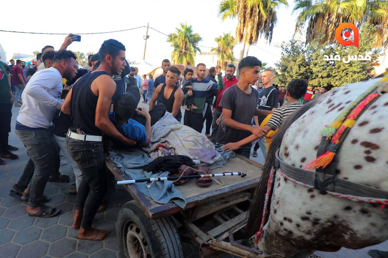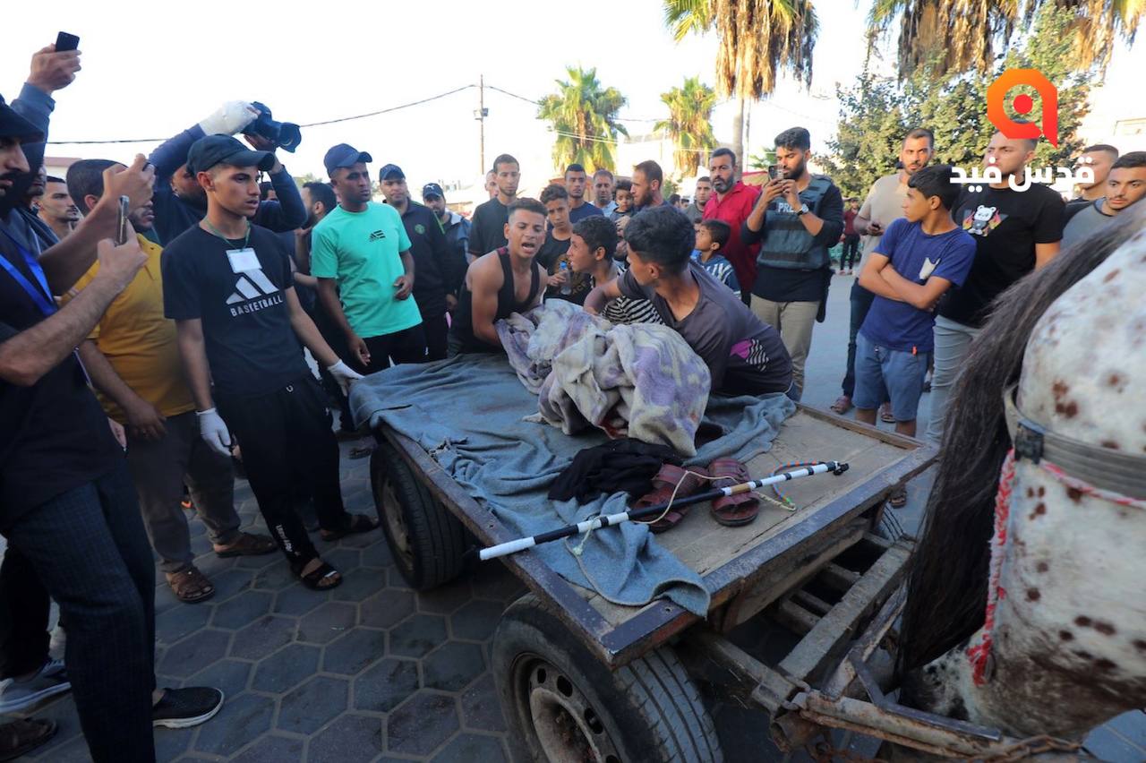 حمل اجساد شهدا و مجروحان با گاری در غزه