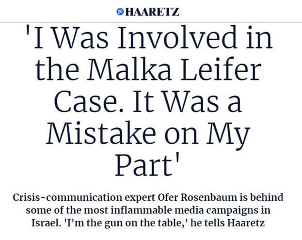 در اواخر اکتبر گذشته، روزنباوم مسئول یک کمپین بیلبوردی در تل آویو بود که در آن محمود عباس، رهبر تشکیلات خودگردان فلسطین و اسماعیل هنیه، رهبر حماس و سید حسن نصرالله رهبر حزبالله، در حال زانو زدن روی زمین با چشمان بسته، تحت شعار "صلح فقط با دشمنان شکست خورده حاصل می شود" به تصویر کشیده بودند.