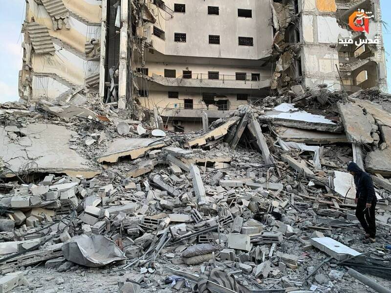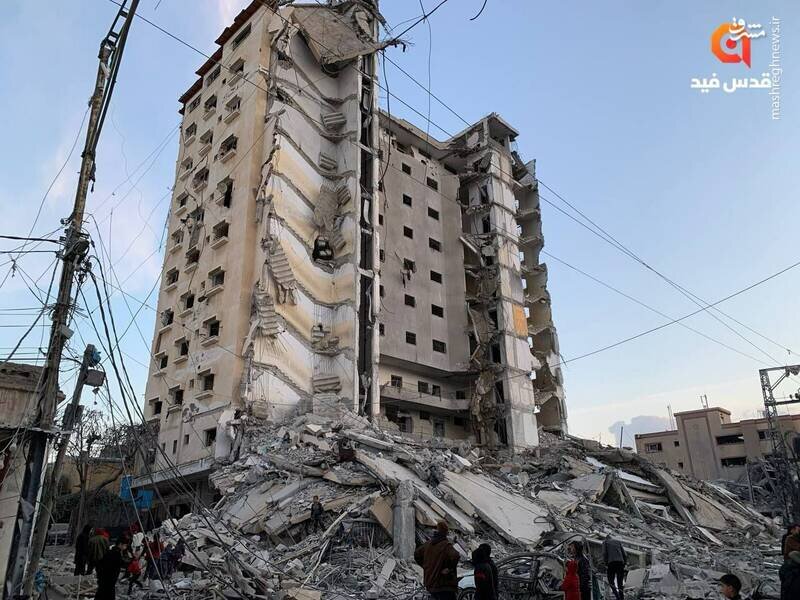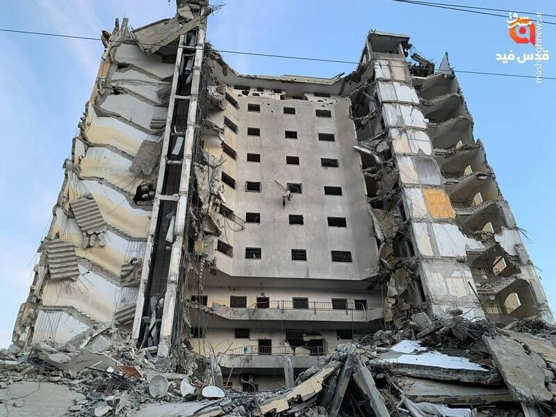 برج مسکونی المصری در شهر رفح بعد از بمباران