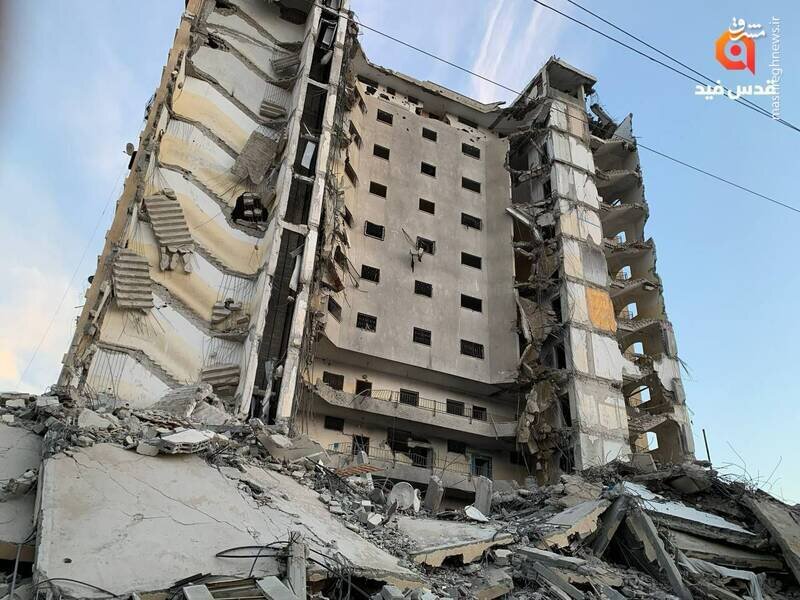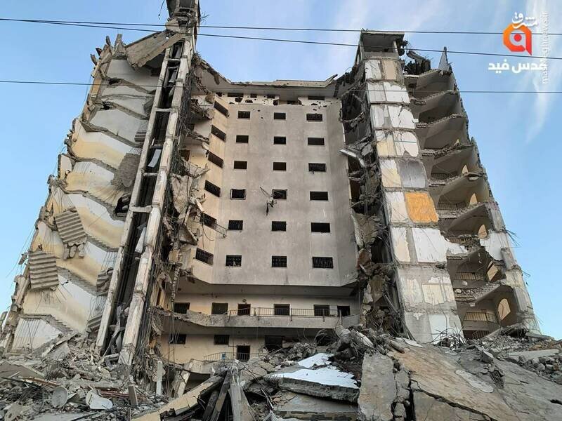 تصاویری از برج مسکونی المصری در شهر رفح که بامداد امروز توسط جنگندههای اسرائیلی بمباران شد.