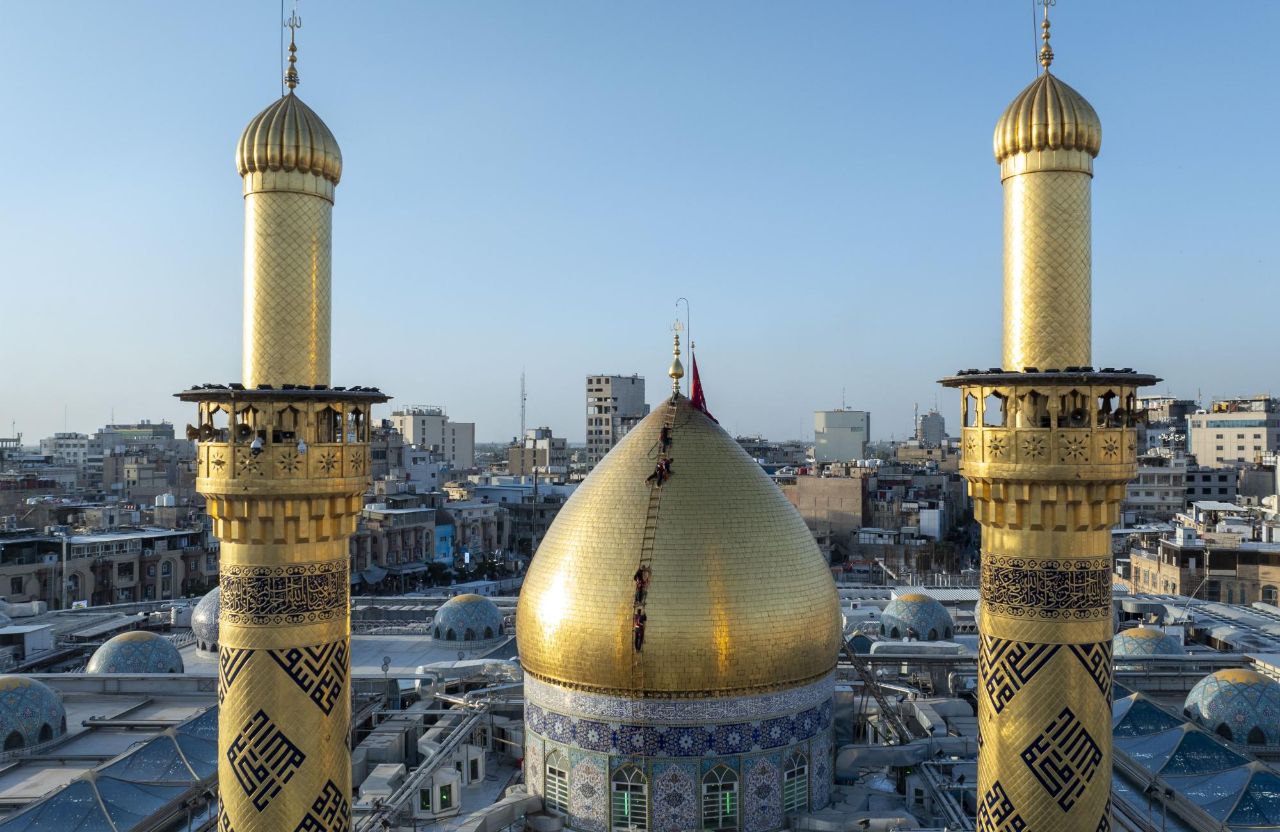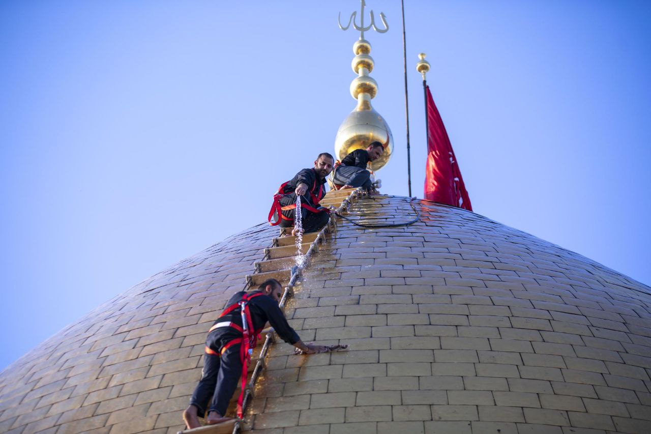 کارکنان اداره نظافت حرم مطهر حضرت عباس (ع)، گنبد حرم ایشان را شست وشو و تمیز کردند.