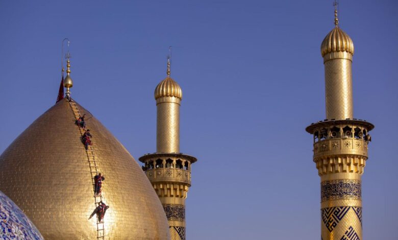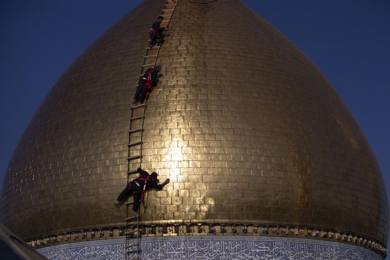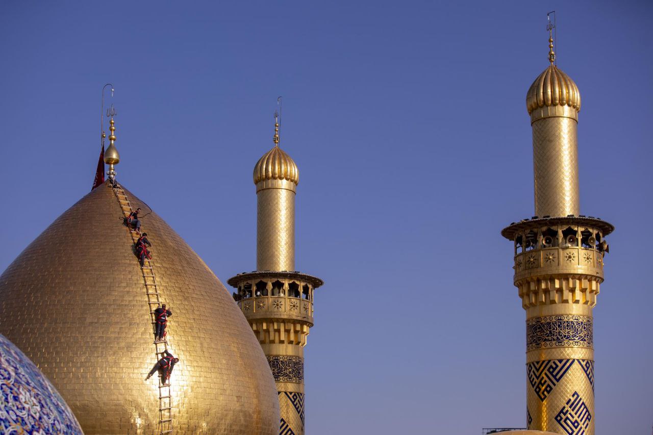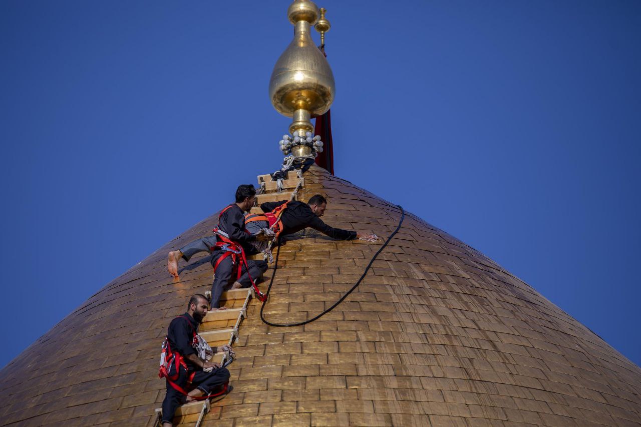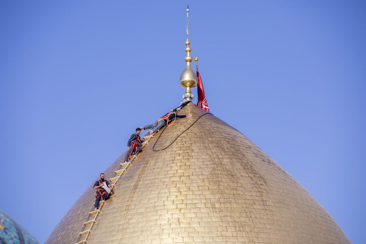 شستوشو و تمیز کردن گنبد حضرت عباس (ع)